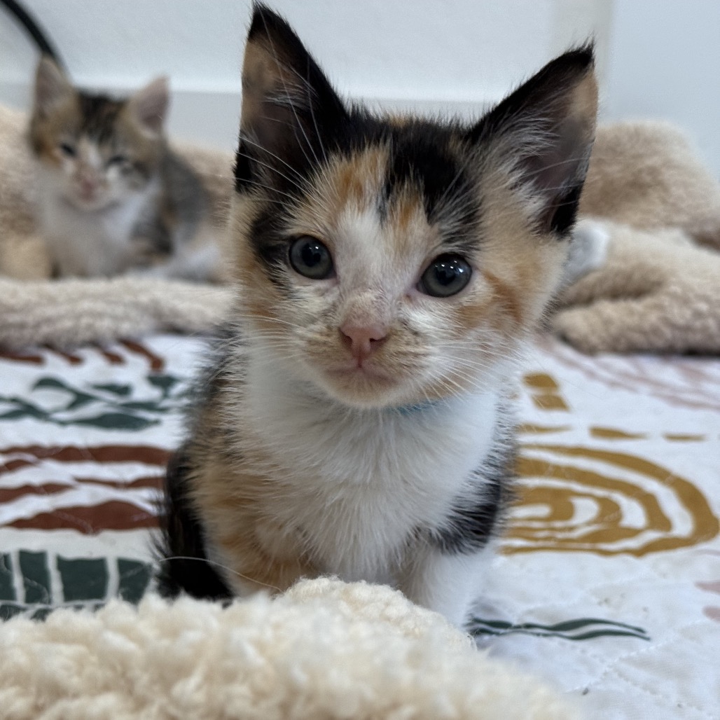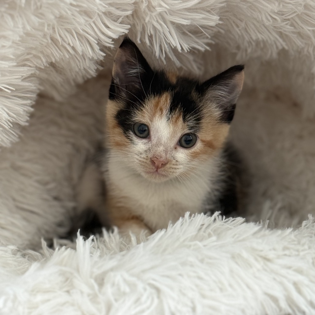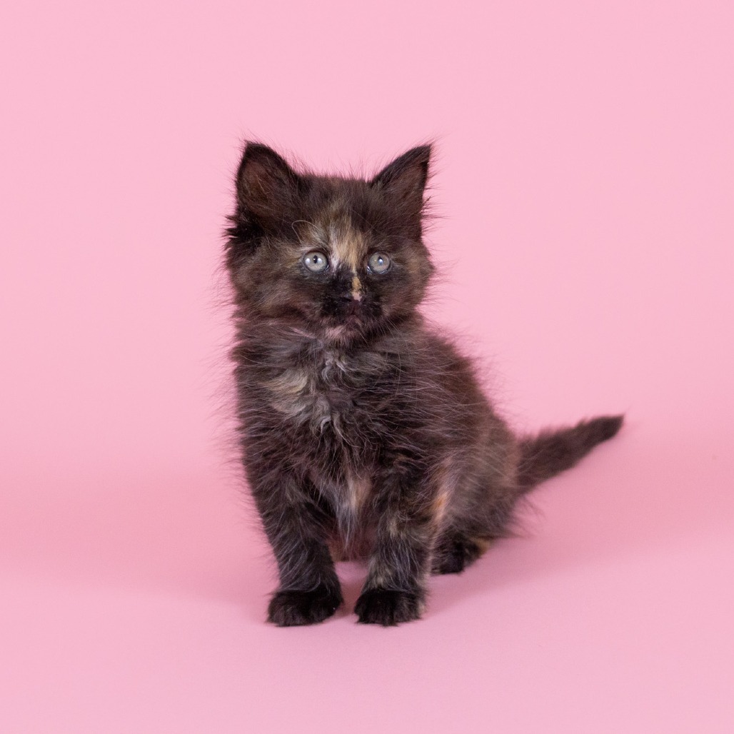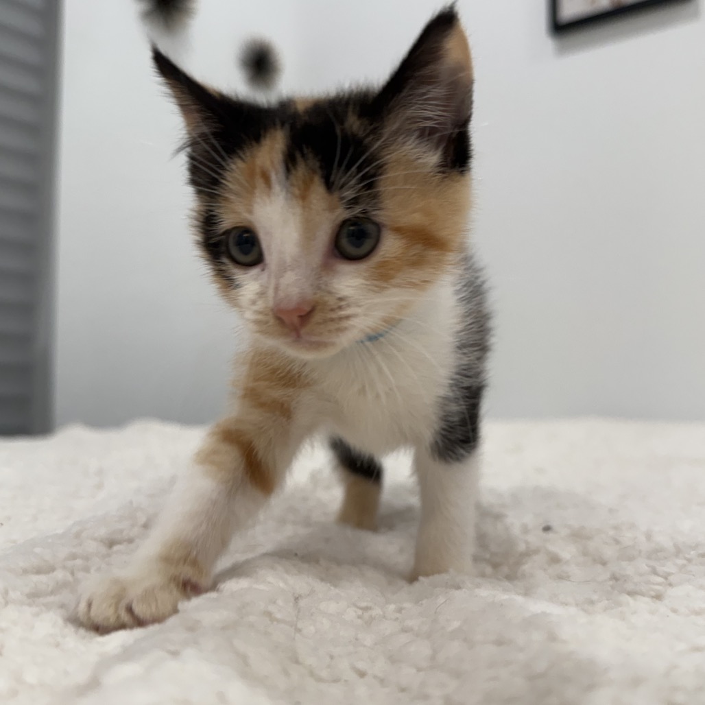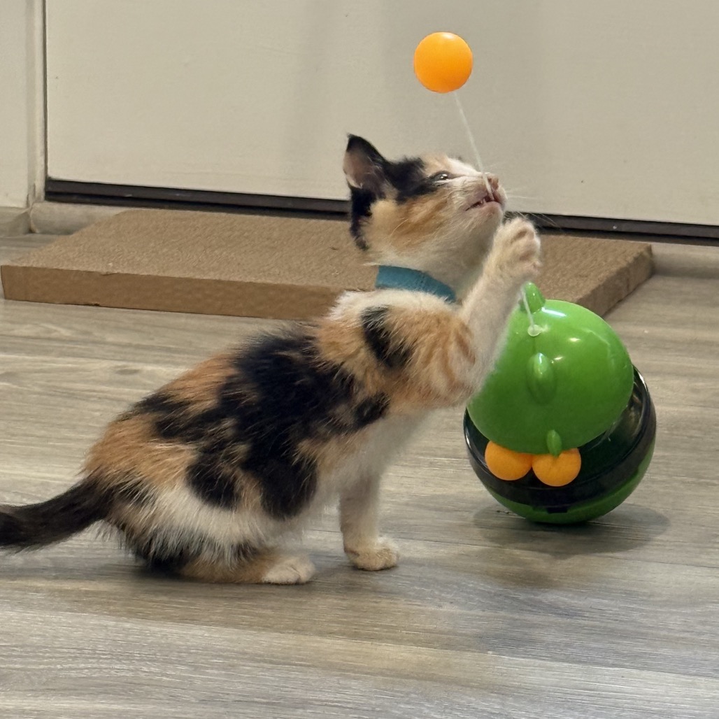 She would thrive in a home with plenty of playtime, activity, and ideally another feline companion to keep her entertained. Amaretto may not be much of a lap cat (yet!), but her loyal presence, playful heart, and fluffy charm make her a wonderful companion for someone who loves a kitten with spunk and spirit.