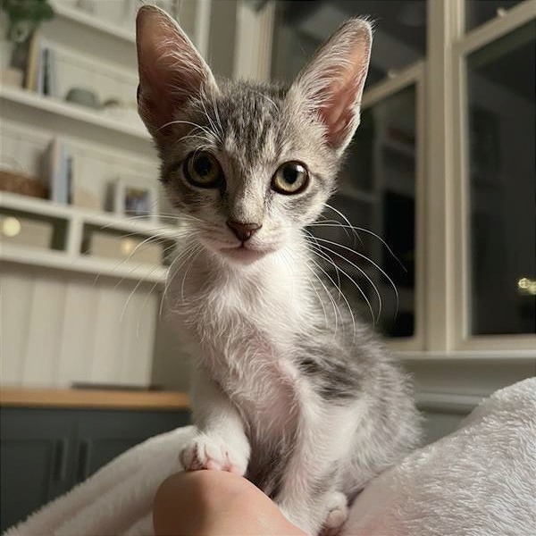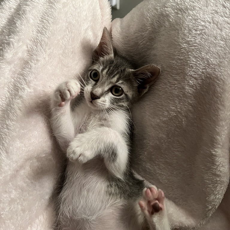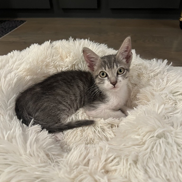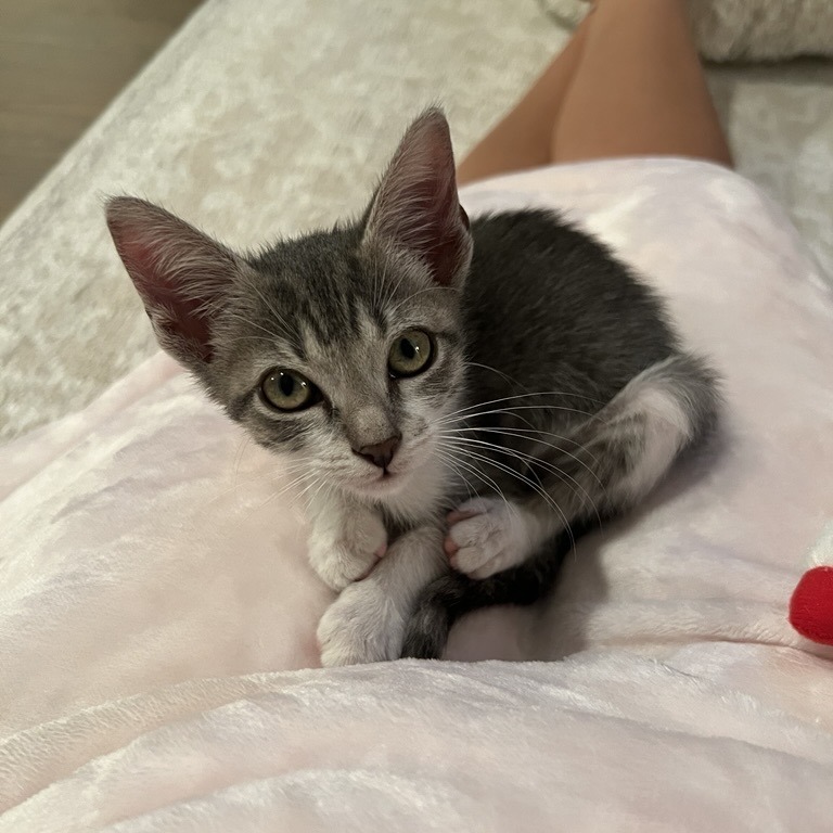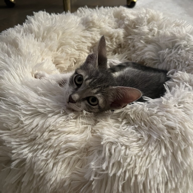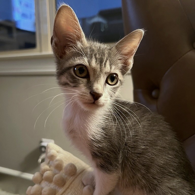 Whether she’s curling up in your lap or showing off her curious side, she’ll make you laugh and melt your heart all at once. If you’re looking for a kitten with a sweet personality and even bigger heart, miss Amelia is your girl!
