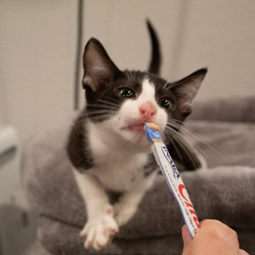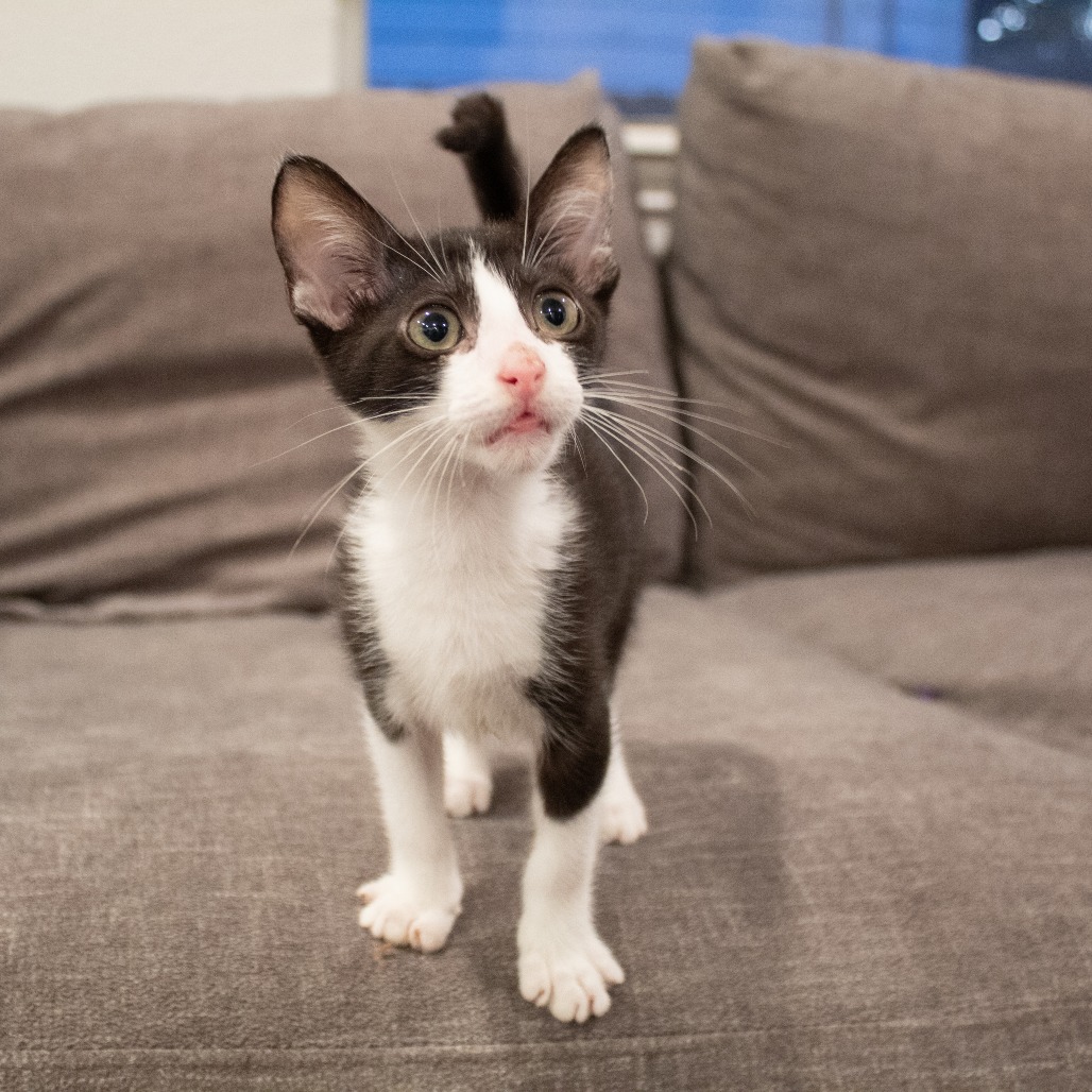 If you are looking for an adorable and playful companion, Aperol is your guy. He is a moderate energy cat who loves to play and nap equally. He loves to climb his cat tower and meet his human face to face for kisses and scritches.