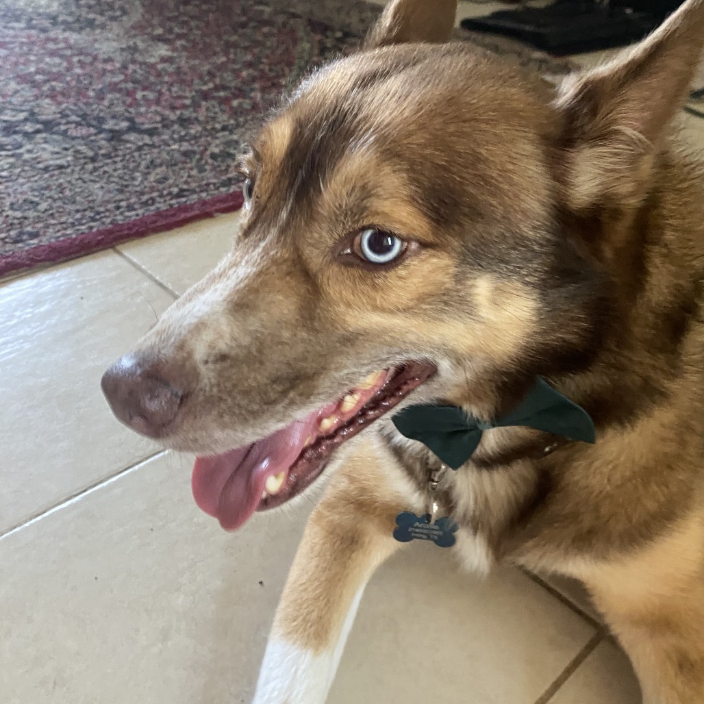 Meet Archie! Archie is listed as an Australian Shepherd, but he has the personality of a Husky. He weighs about 67 pounds and was born on January 8, 2022.