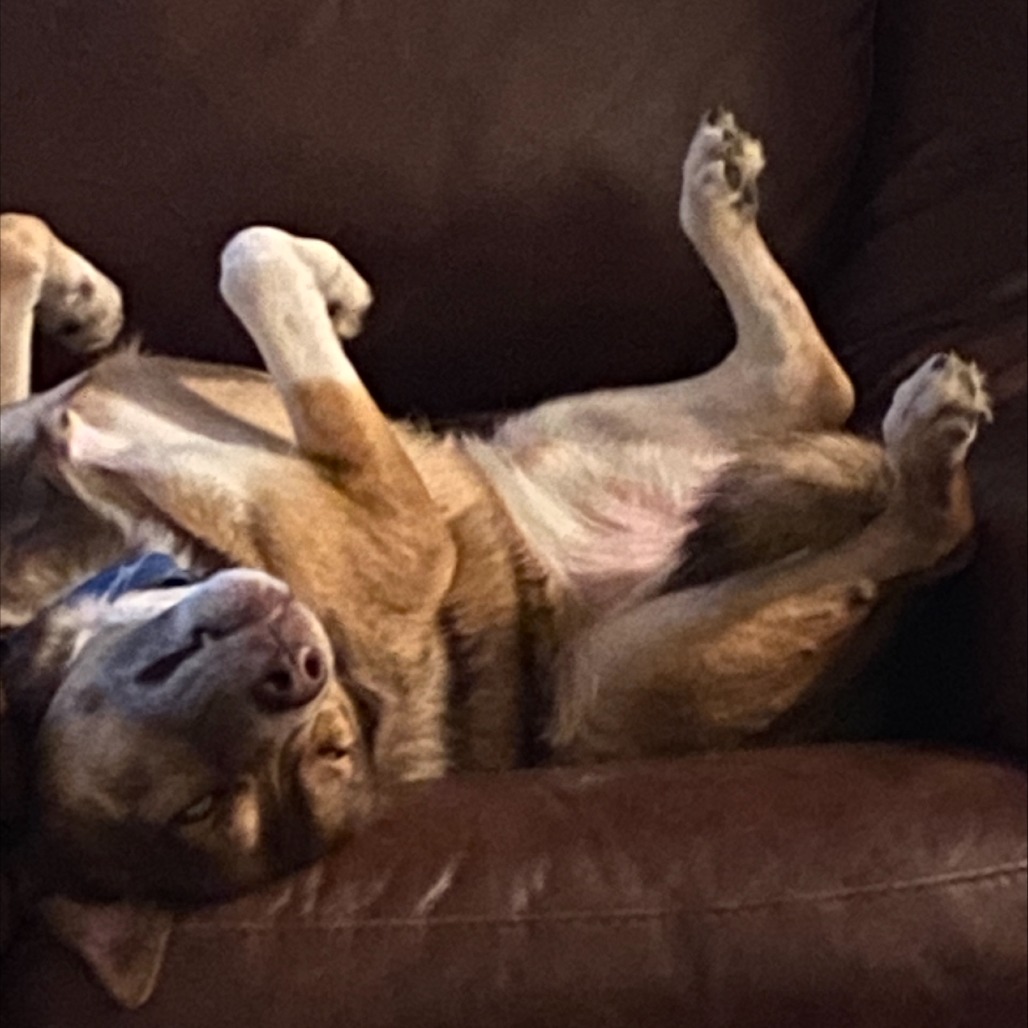 Archie is a sweet, gentle dog with a calm energy level. He currently lives in a low-activity household, which may have influenced his laid-back nature, though with a more active lifestyle, he may become more energetic. He doesn’t seem to know how to play in the traditional sense, but every so often, he’ll pull all his stuffed toys (“his babies”) from the basket and scatter them around the room. His favorite place to nap is in a leather chair, where he spends much of his day.