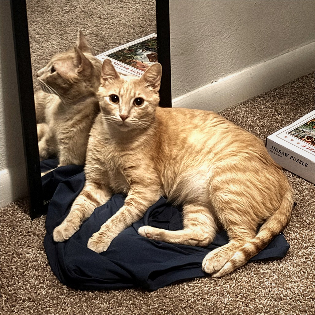 Bartholomeu is FeLV+. Feline Leukemia Virus (FeLV), is a virus that attacks the immune system of a cat. Cats with FeLV can live normal, happy, healthy lives— but they have a much shorter life expectancy than FeLV negative cats. Over time, an infected cat’s health may progressively deteriorate or they may experience repeating cycles of illness and relative health. Close monitoring and regular vet care are important to manage the disease.