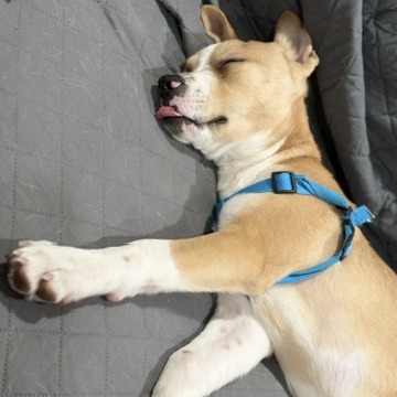 This little trooper bounced back from parvo and now lives every day to the fullest — tail wags included. He’s incredibly smart and food-motivated, which makes training easy and fun! Beeper is already learning potty and crate training and is doing great for such a young pup.