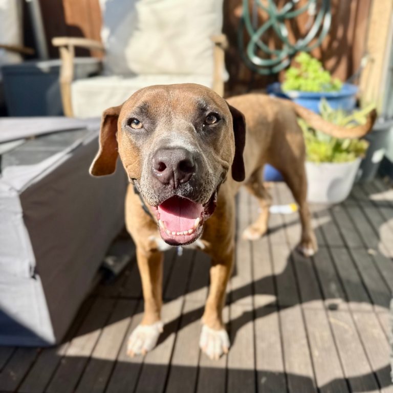 Bella is a five-year-old Blue Heeler and Pit mix with the perfect mix of playfulness and love. She’s a sweet, affectionate girl who adores cuddles just as much as she loves running around and playing outside. Bella has a medium energy level—she can be full of zoomies in the yard, but she’s also happy to curl up with you for some quiet time. If you have a big backyard, she’ll make the most of it with her favorite game of fetch and toy-catching.