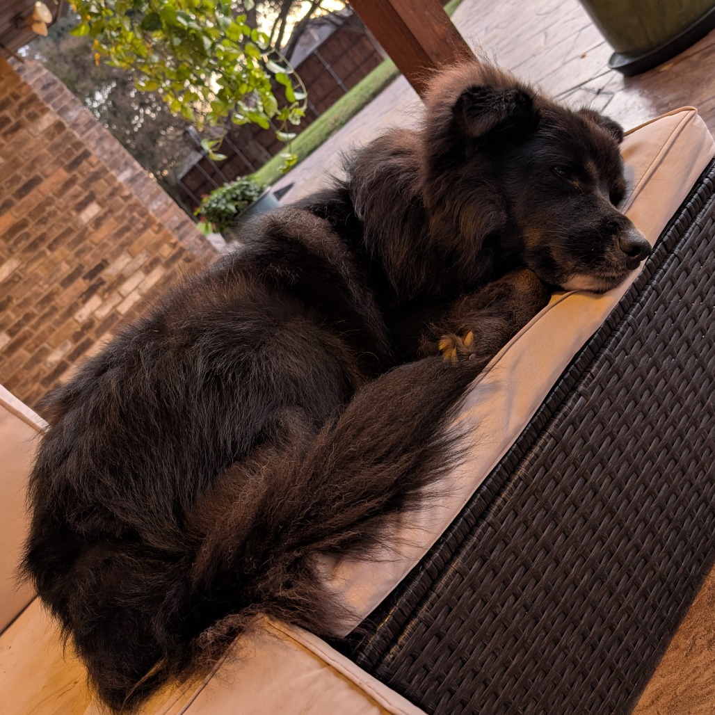 Bowie is a laid back, very zen, sometimes a little derpy, pup who loves to take walks and chase squirrels, but is equally comfortable just lounging around all day. Bowie is great with kids, he lived with my Niece his whole life, and is very gentle and loving with her. He’s great at chasing balls, just not great at returning them. He gets along great with other dogs, and has lived with cats before, though not recently.