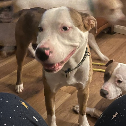 I’d be great with a family or active owner. I love fetch and squeaky toys. I never have accidents inside and I go to my crate when foster mom goes to work. A treat always helps to get me in there. I’m really smart and full of puppy love and energy. My foster mom tells people I’m ’move In ready’.
