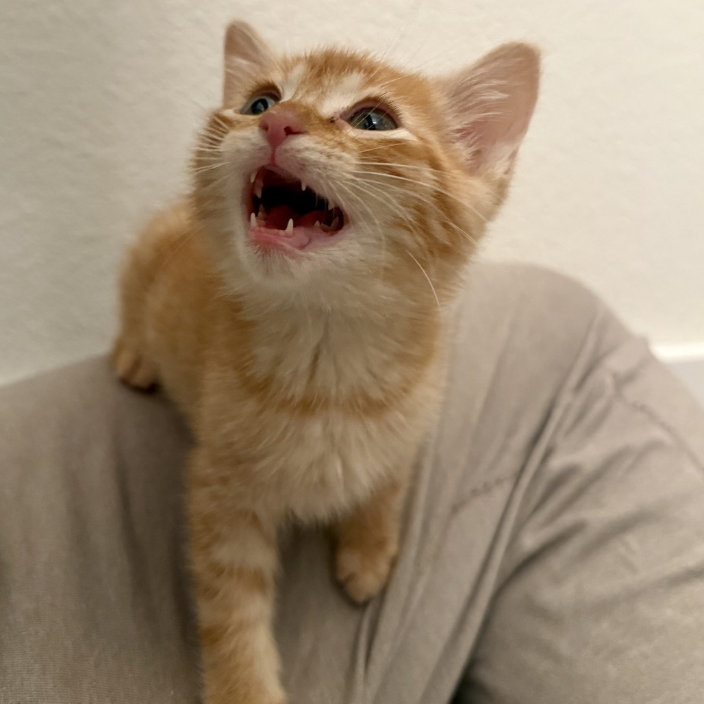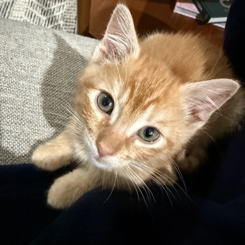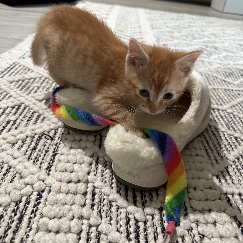 Meet Cabernet, the handsome orange boy who’s equal parts playful and affectionate. With his big meows and nonstop purrs, he’s always ready to chat and make sure you know just how happy he is to see you. Cabernet loves a good play session, especially when there’s a ribbon toy to chase or a sibling to pounce around with!