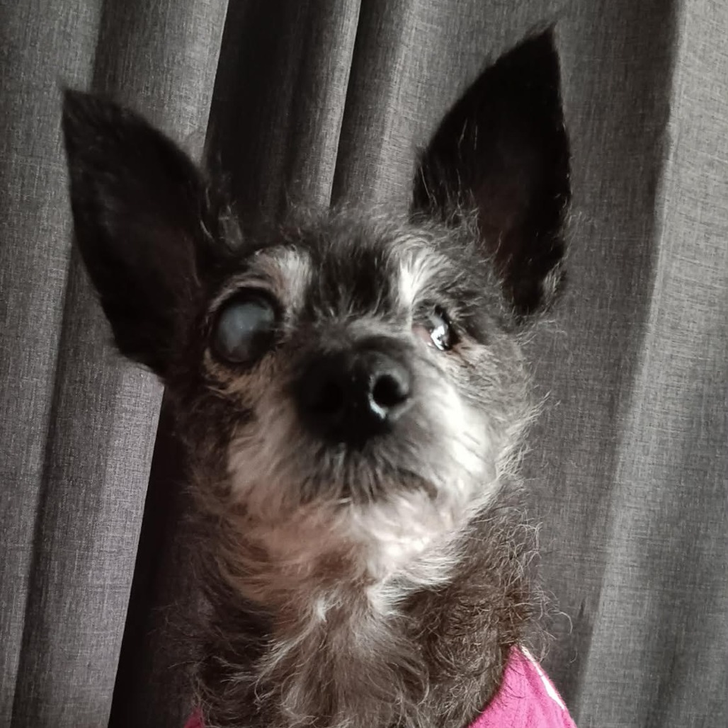 Don’t let the three legs fool you — this 12-year-young, 15-pound terrier mix moves just fine and runs the household like a pro! Candy is a professional lap warmer, full-time shadow, and part-time attention thief (she prefers to be your one-and-only 😉).