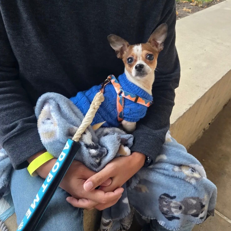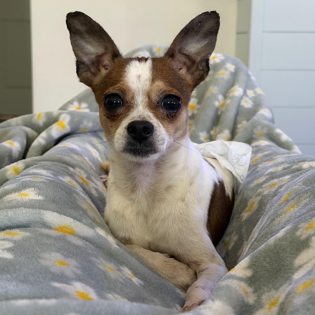 Chile has never met a stranger and he loves people. He is a great patio dog & enjoys getting attention from all the people who like to stop & tell him how cute he is.