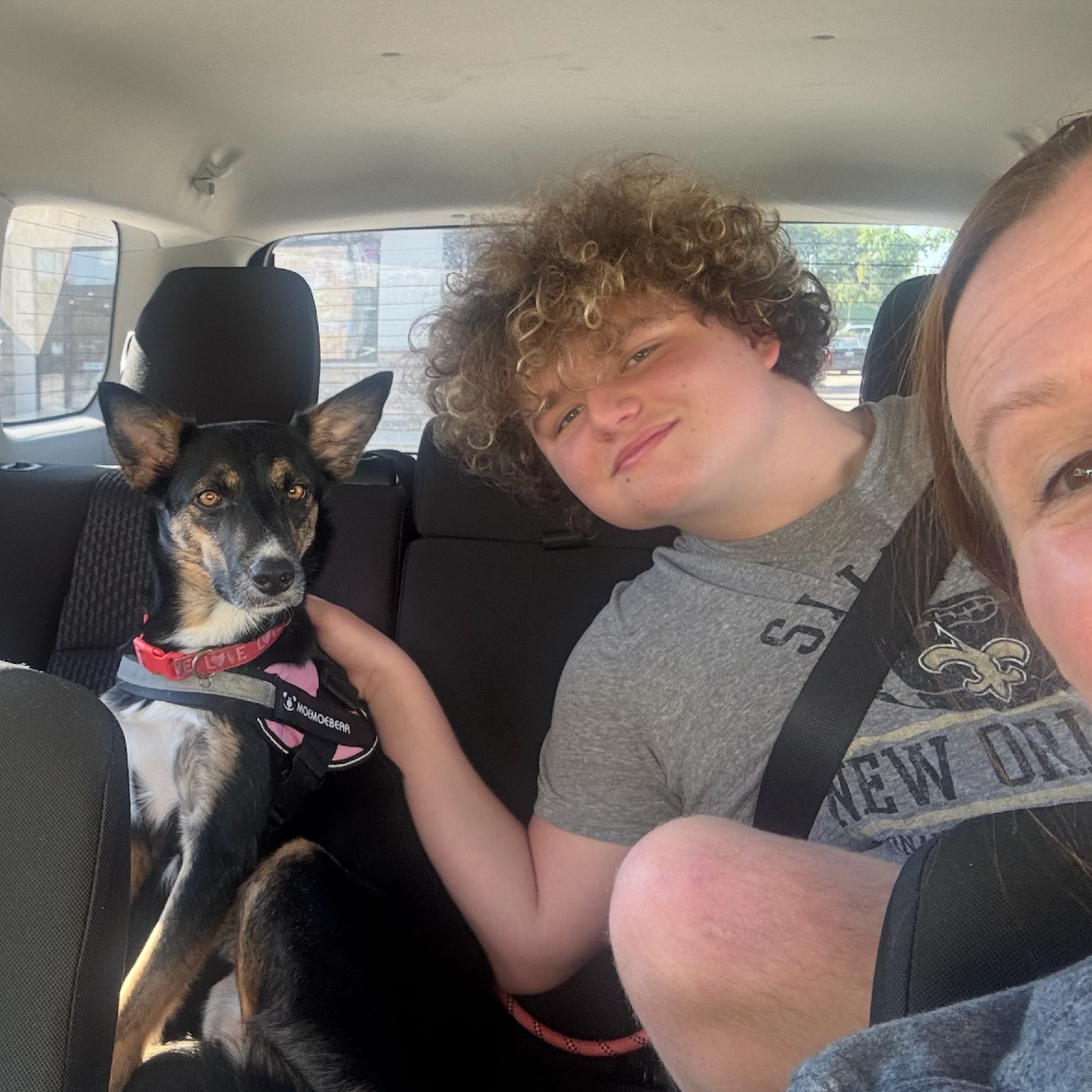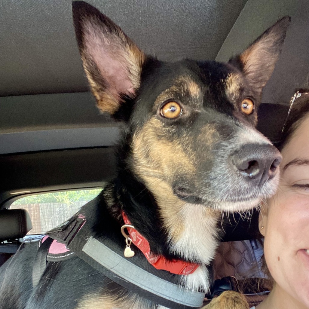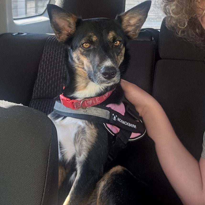 Her personality can be summed up as “lively” and “smart.” With an energy level that is fairly moderate, Claire is up for adventures out in the world or down for cuddles on the couch. She likes kids and loves other dogs…with whom she enjoys wrestling games.