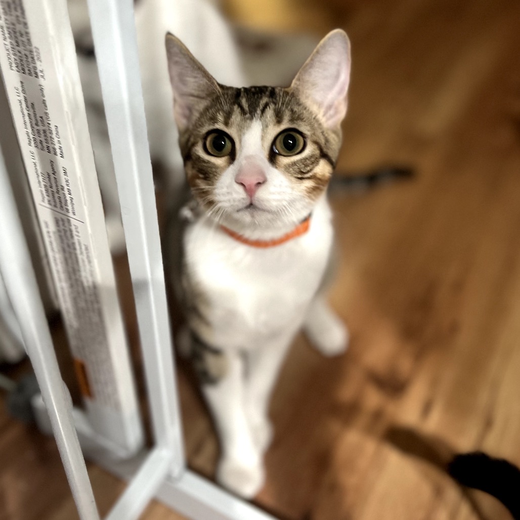 Millie is the perfect mix of sweet and sassy — and she’s a little chatterbox too! 🐱💬 She loves chasing feather wand toys, zooming around with her siblings, and never turns down a Churu treat. This playful, silly girl will keep you smiling and loves to tell you all about her day.