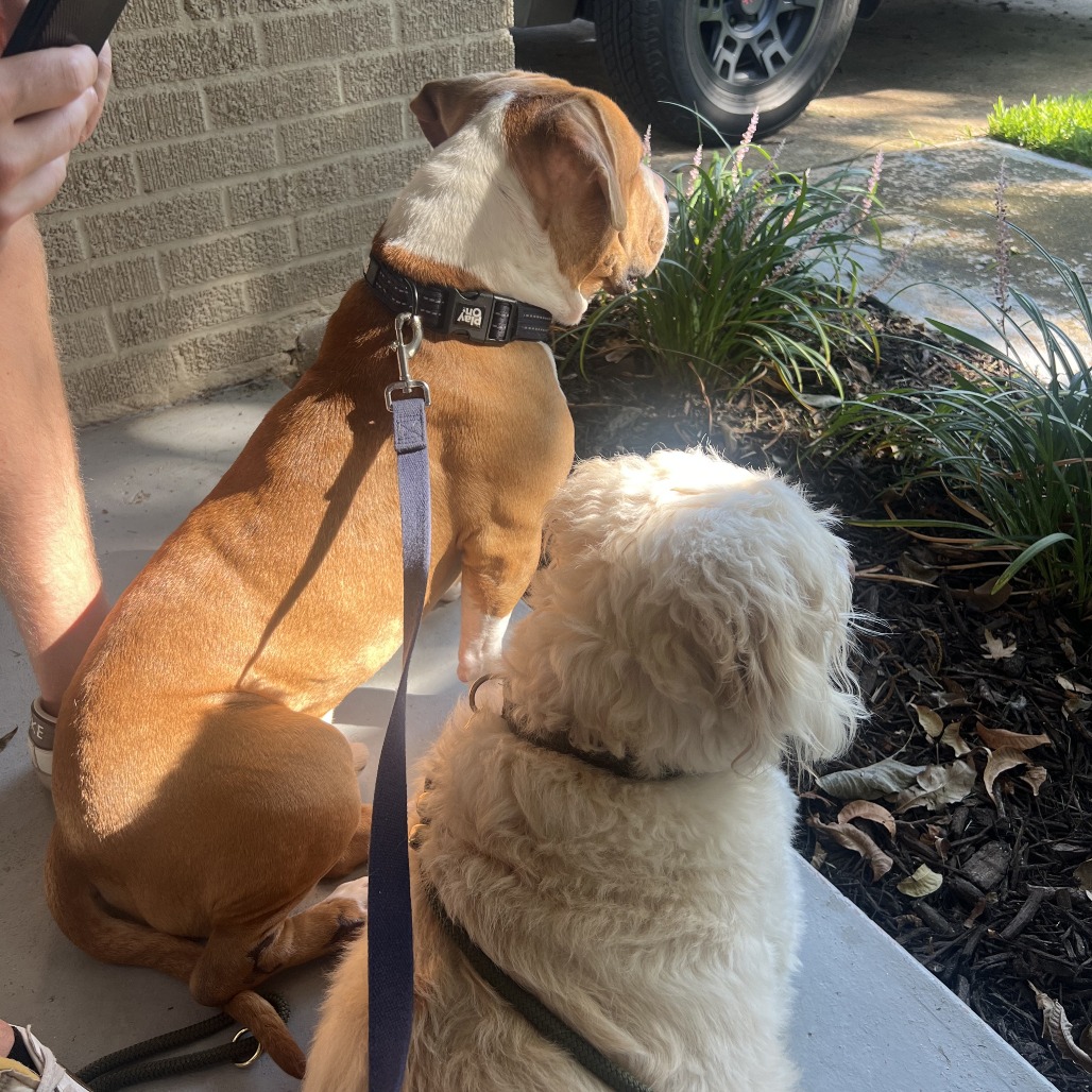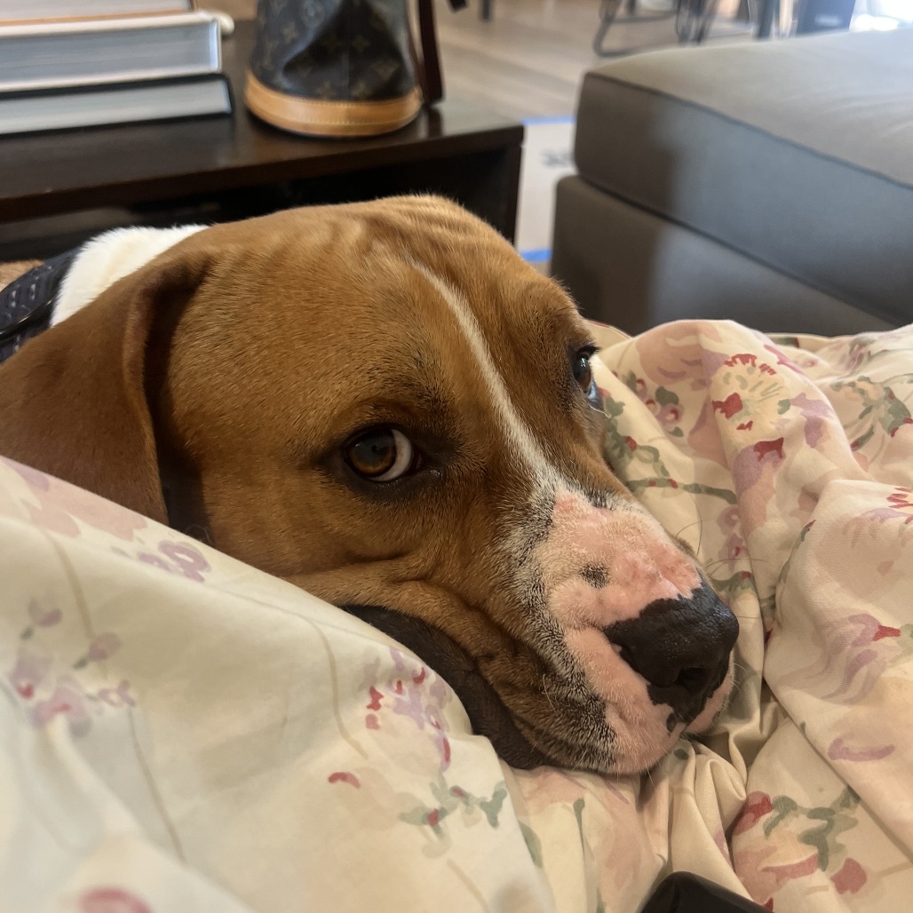 His favorite things are to cuddle on the couch, sunbathe, watch squirrels out the window, and meet other dogs. And ladies. Dingo LOVES the ladies.