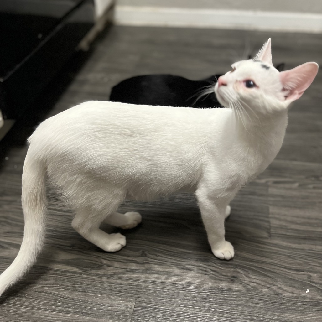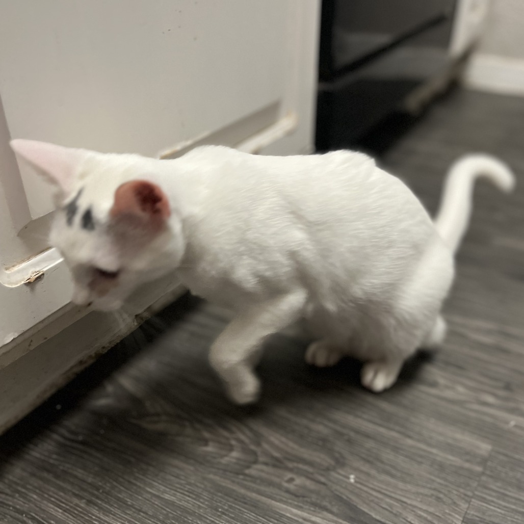 Freckles is potty-trained and knows how to use a scratching post like a pro. Her energy is a delightful mix; she loves a burst of playtime and exploration but also enjoys winding down for cozy naps. This curious little adventurer adores playing with other cats and discovering new toys. Her playful antics are sure to keep you entertained, and her happy meows when she sees someone will melt your heart.