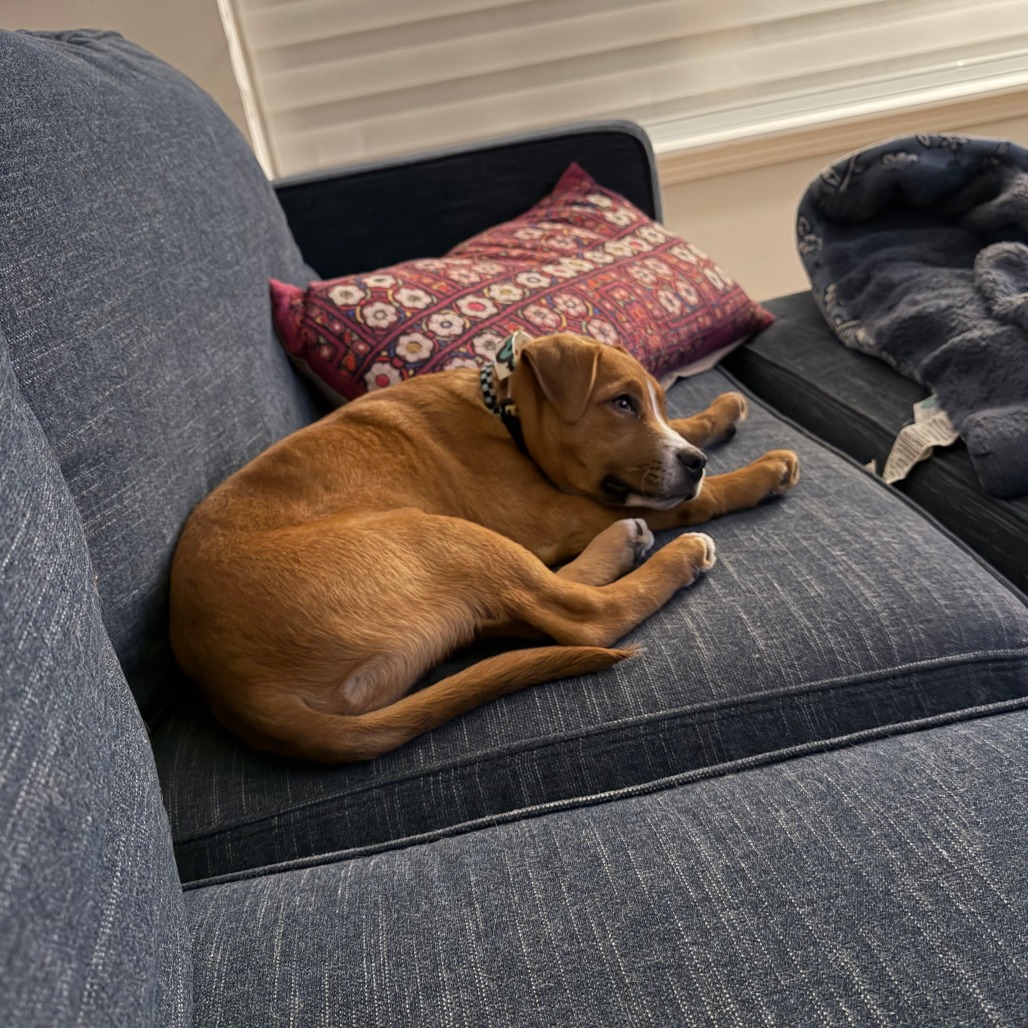 He loves a good piece of ham, couch naps, a roll in the yard, and would likely love a home with other dogs.
