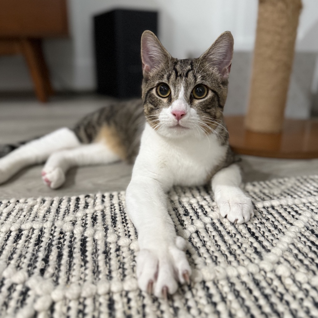 Gimlet would thrive in a loving home that gives him the space and time he needs to feel safe. Ideally, he’d love to be adopted with a sibling or into a home with another friendly feline to help show him the ropes. With opportunities to explore, play, and be gently encouraged, Gimlet will no doubt reward his forever family with quiet loyalty and sweet companionship.