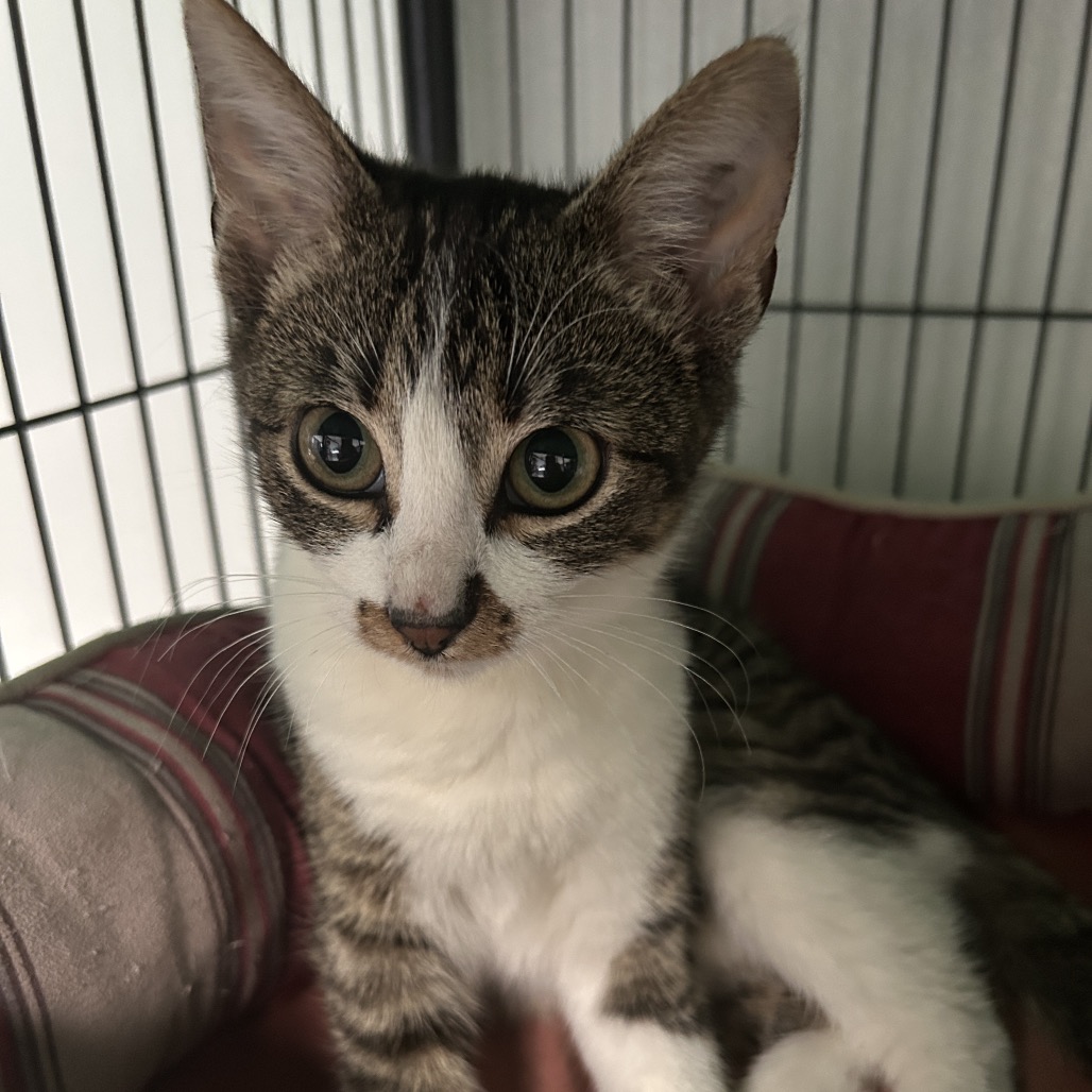 Gimlet would thrive in a loving home that gives him the space and time he needs to feel safe. Ideally, he’d love to be adopted with a sibling or into a home with another friendly feline to help show him the ropes. With opportunities to explore, play, and be gently encouraged, Gimlet will no doubt reward his forever family with quiet loyalty and sweet companionship.