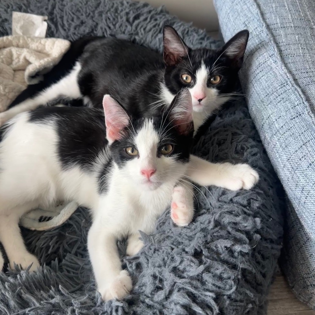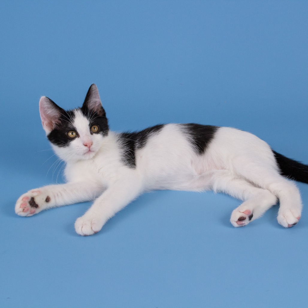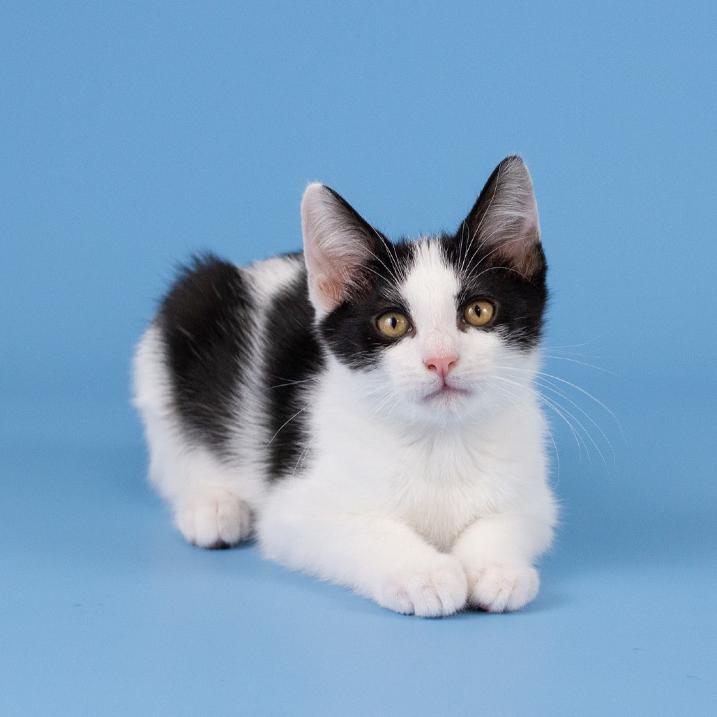 At just 2 months old, Judo is already a certified goofball who’s always ready to make you laugh. When he’s not in the middle of a wrestling match with his brother, he’s asking for attention with his sweet little meows. He may not be quite as clever as his sibling, but he makes up for it with his clumsy charm and lovable antics… especially when he tumbles out of his cat tree mid-pounce.