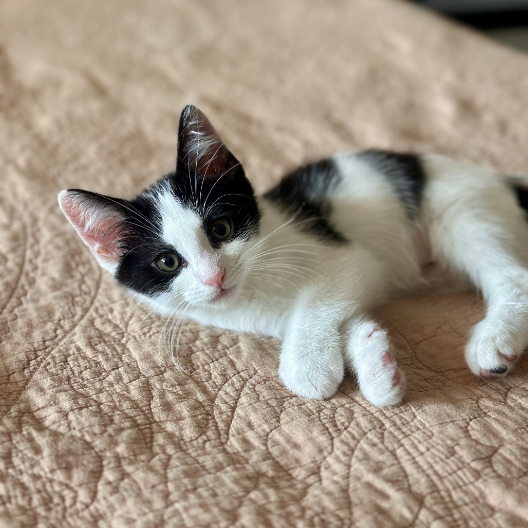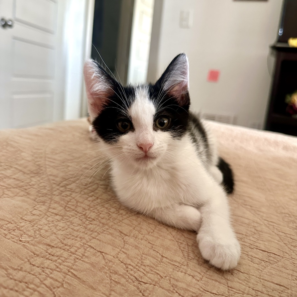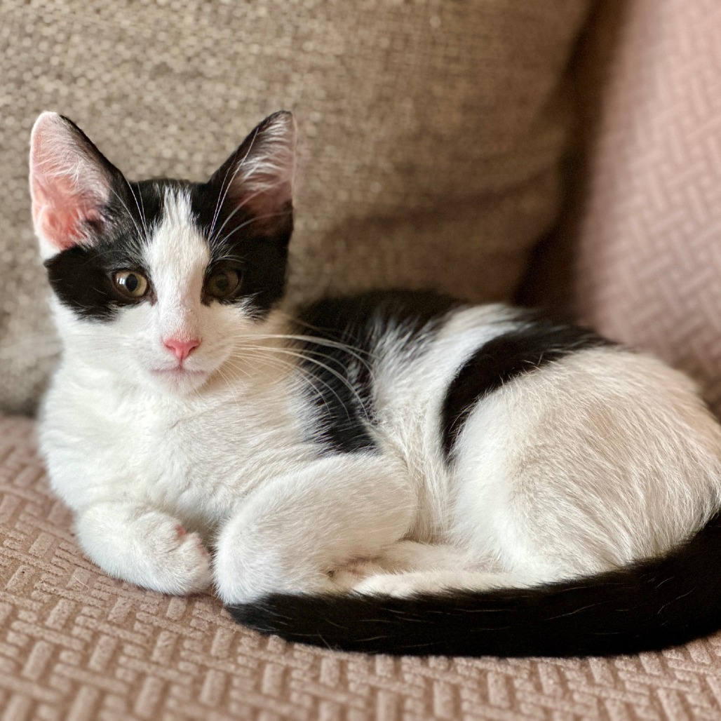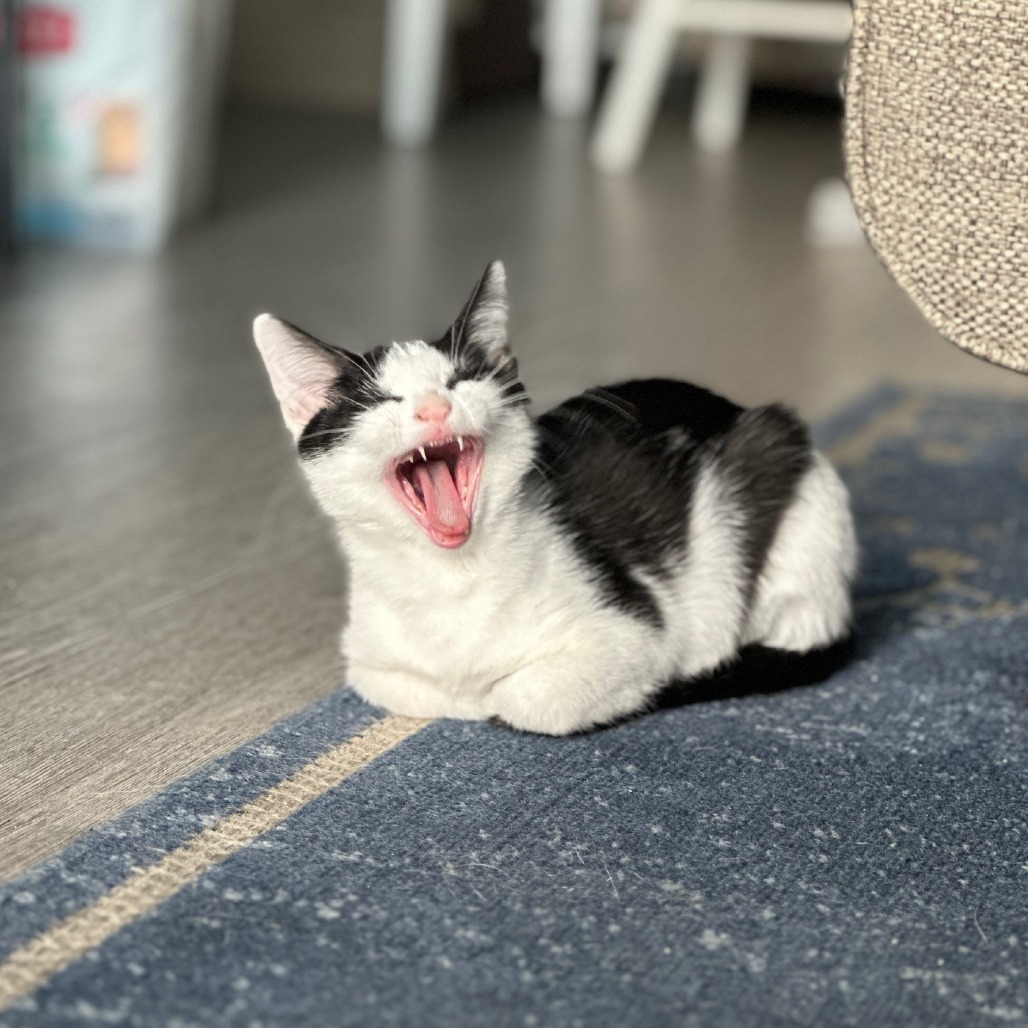At just 2 months old, Judo is already a certified goofball who’s always ready to make you laugh. When he’s not in the middle of a wrestling match with his brother, he’s asking for attention with his sweet little meows. He may not be quite as clever as his sibling, but he makes up for it with his clumsy charm and lovable antics… especially when he tumbles out of his cat tree mid-pounce.