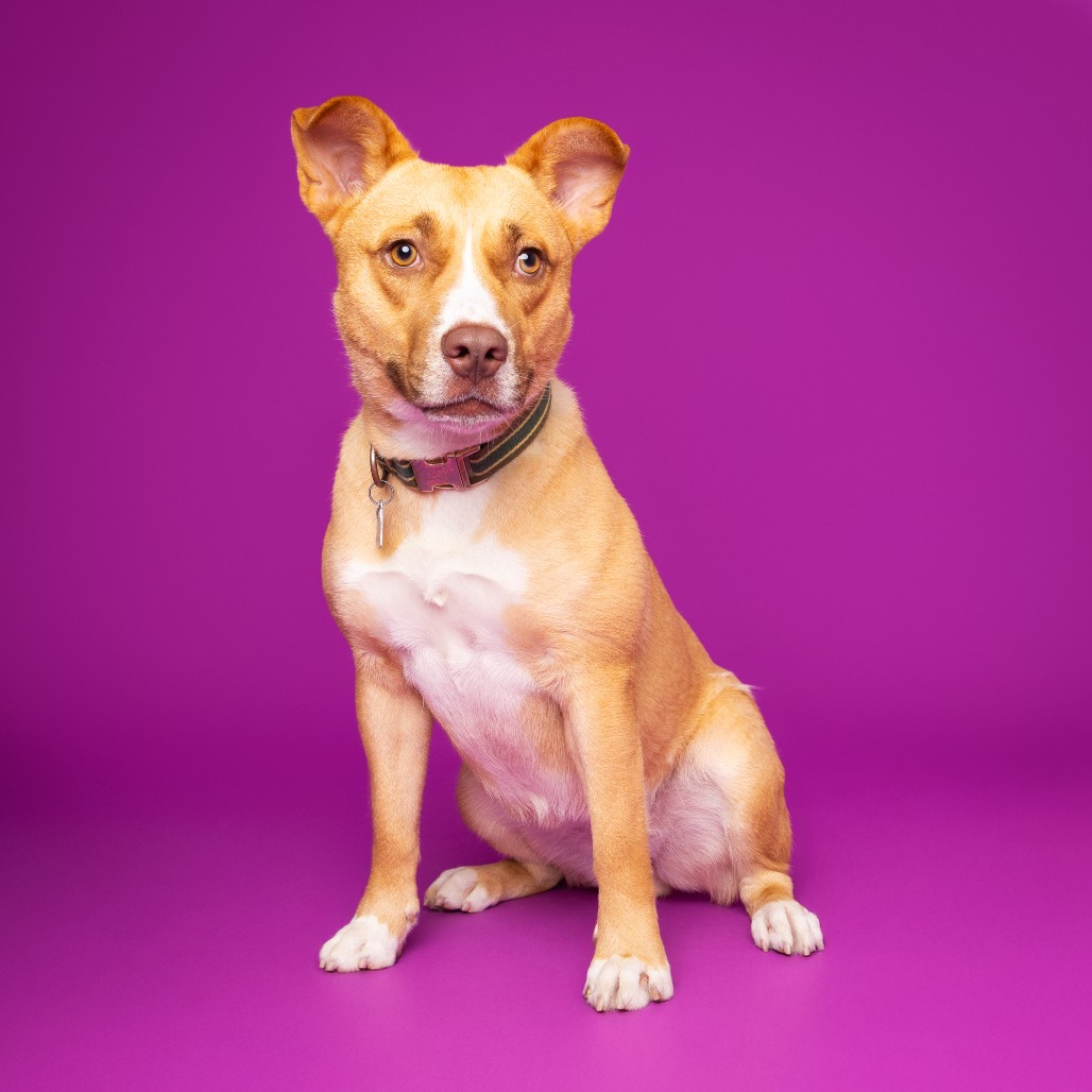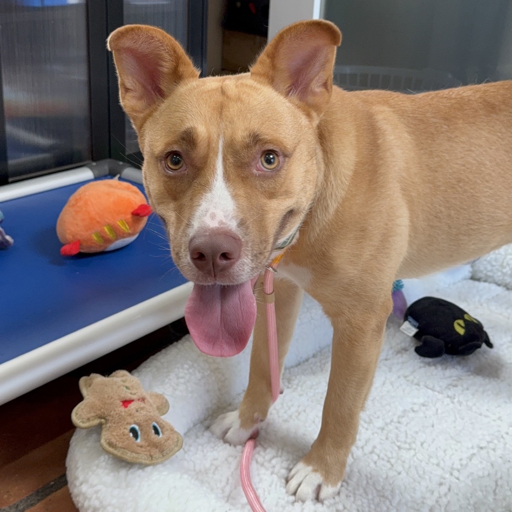 A playful, active home with structure, love, and time to help her keep learning. She’d thrive with another confident, energetic dog who enjoys rough-and-tumble play, or as a solo pup with plenty of exercise and enrichment. Fiesta is bright, affectionate, goofy, and full of potential — the kind of dog who makes every day more fun.