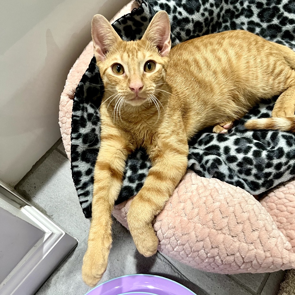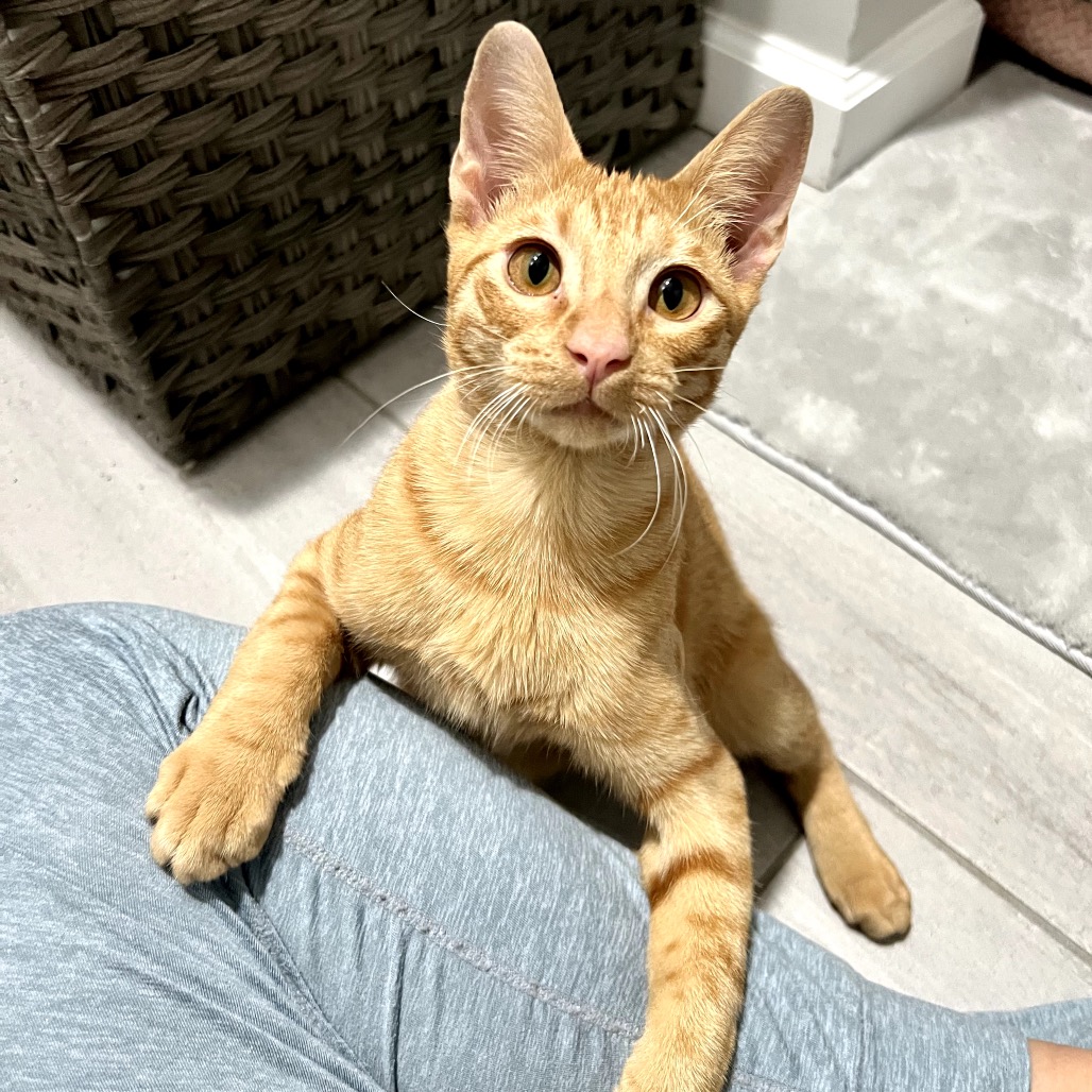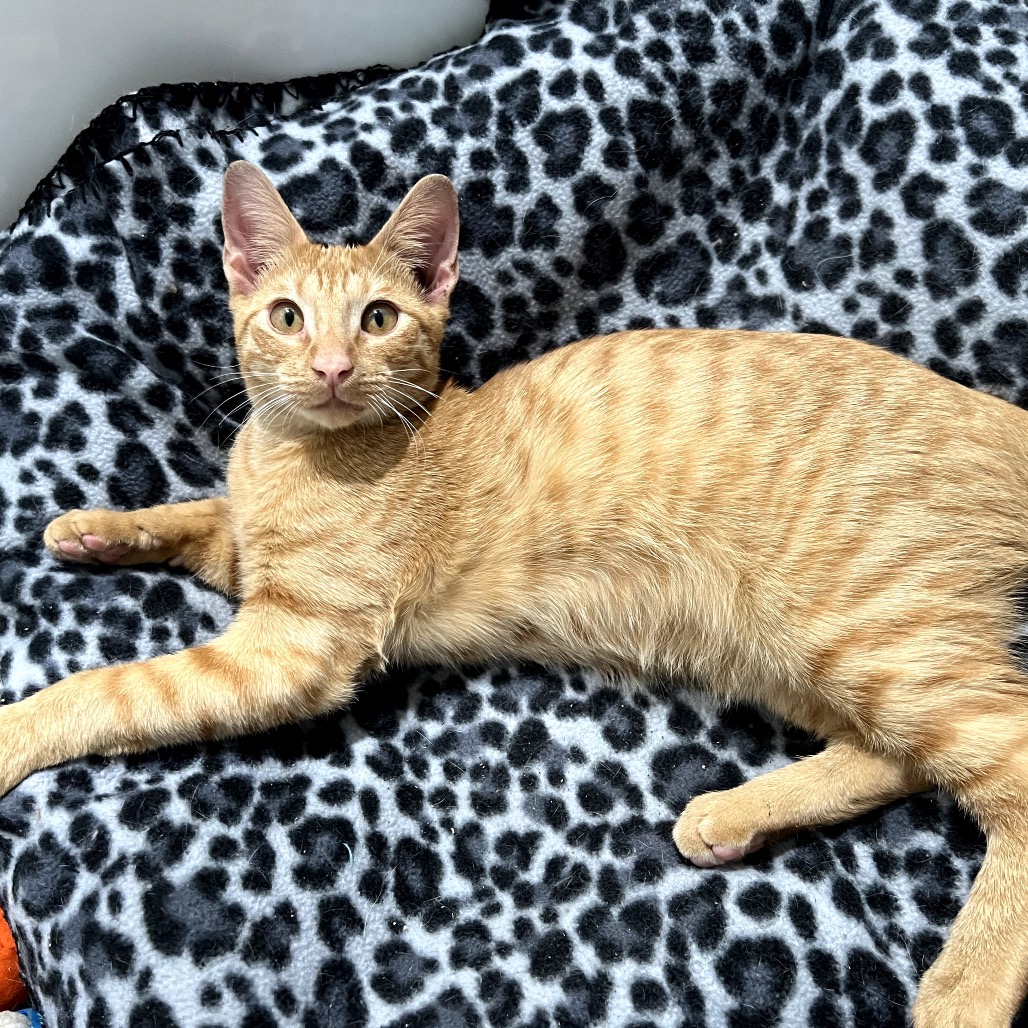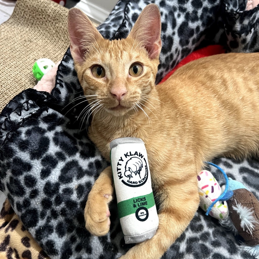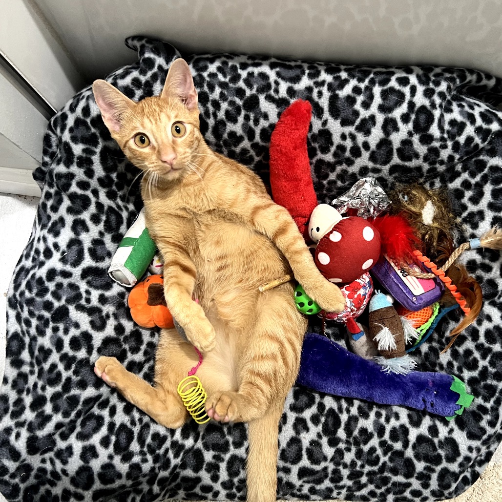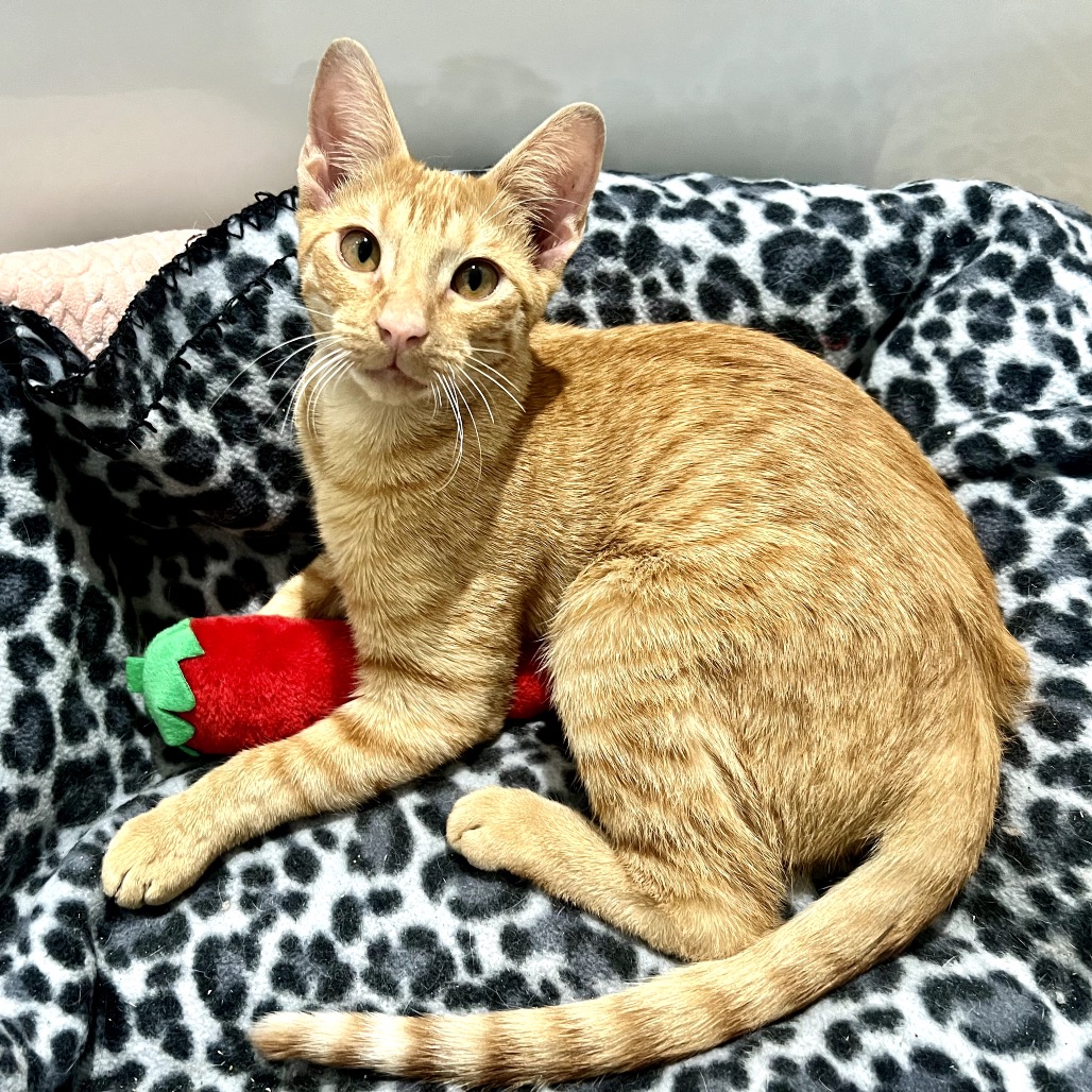 I’m a silly, playful boy who loves zooming around and chasing my favorite toy — those rattle balls with bells inside (they’re the best!). I also never say no to a Churu treat. 😻