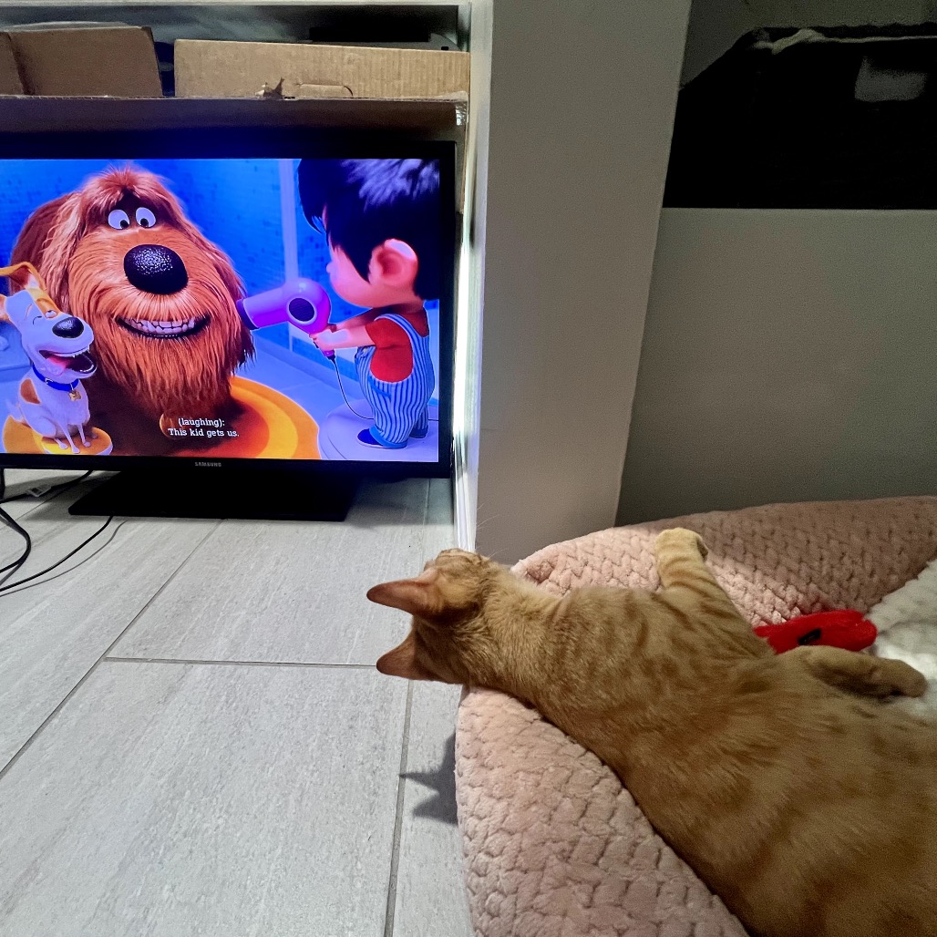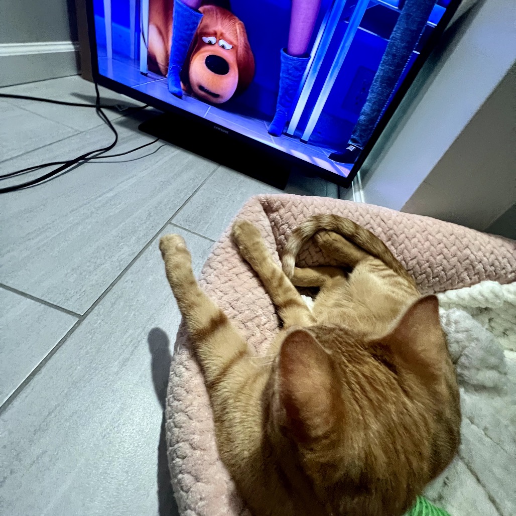 When I’m not playing, I’m affectionate and happy to curl up with you for cuddles. I even love watching cartoons — my favorite is The Secret Life of Pets! 🎬🐾
