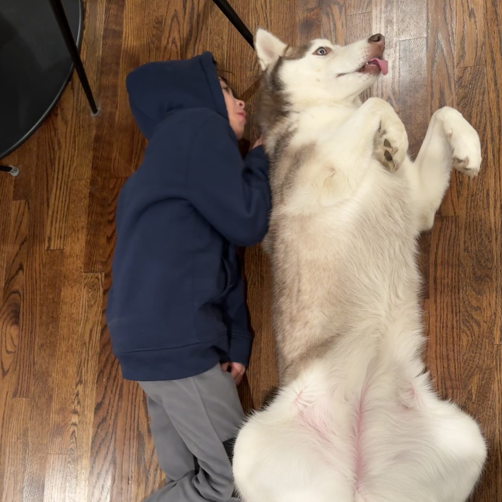 Juno is incredibly friendly and loves everyone she meets. She thrives on attention and will gently remind you if you’ve stopped petting her too soon. She also has strong opinions and isn’t afraid to share them — she’ll “talk” to you in classic husky fashion, usually about something very important like dinner or why she deserves more snacks.