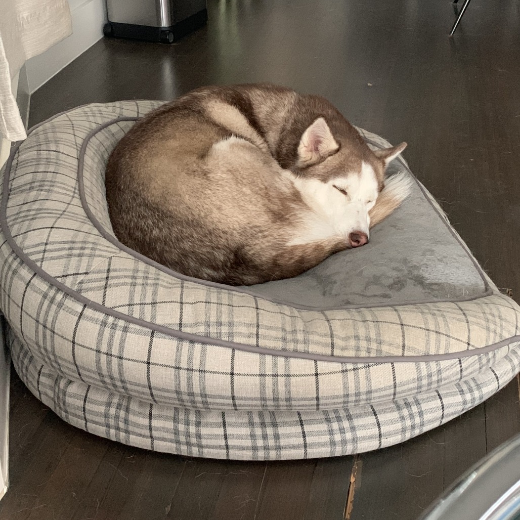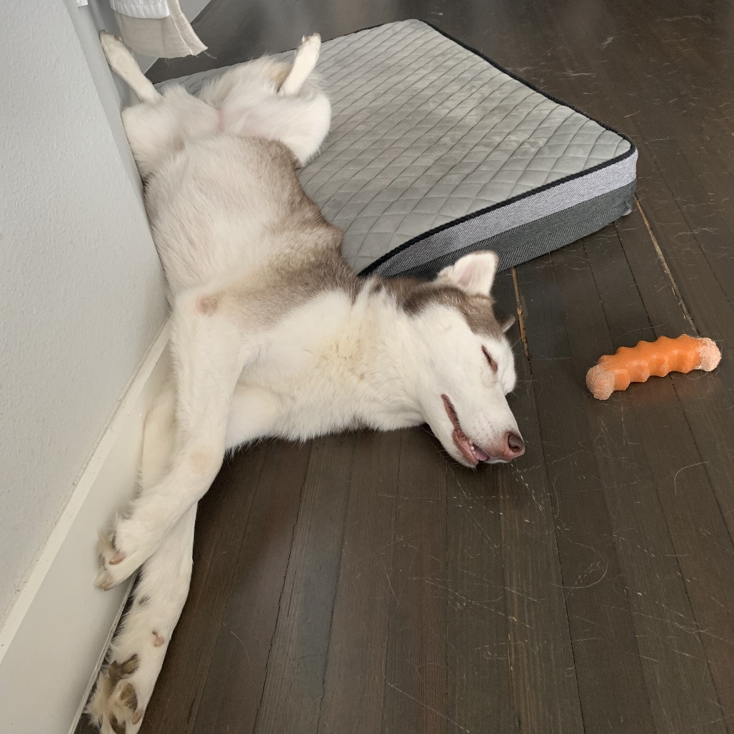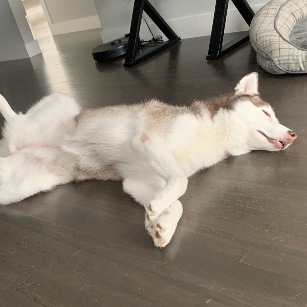 She’s still an active girl and genuinely loves getting outside. Long walks, hikes, and exploring are some of her favorite things, and she’ll happily be your adventure buddy. But unlike your typical nonstop husky, Juno doesn’t need to run a marathon afterward. Once she’s had her exercise, she’s calm, content, and ready to relax with her people.