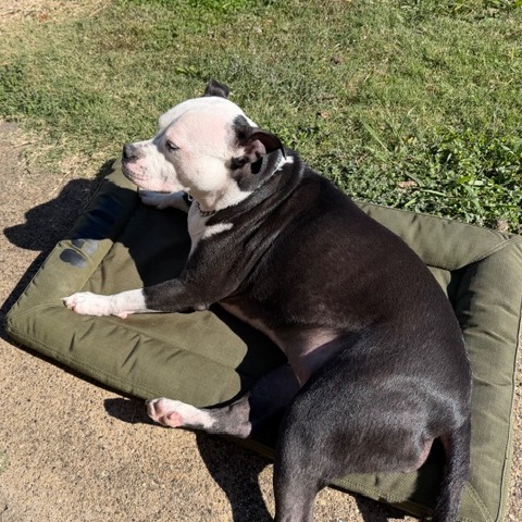 It breaks my heart to see her chew her paw pads off, or wheeze with an asthma attack out of breath. If you like pit bulls/staffies, Kitten is smart as a whip, good with cats and very accommodating and respectful to other pets. You would do well to meet her.