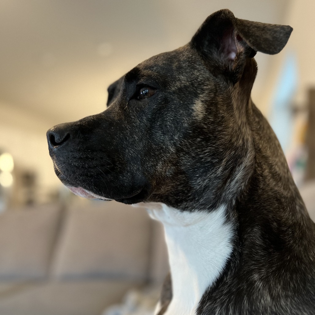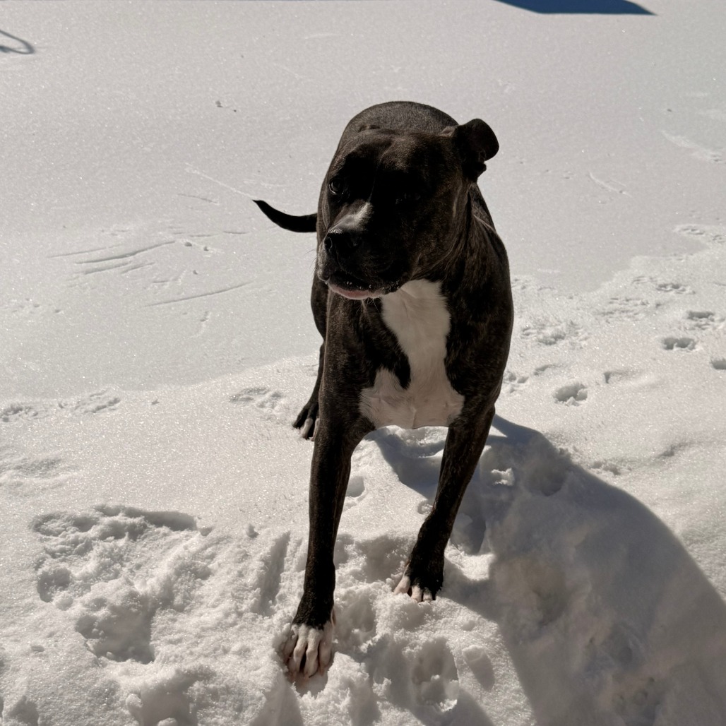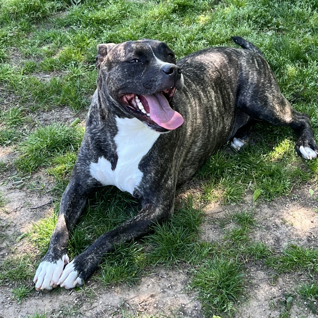 Kodiak is a handsome Boxer-Pitt mix, weighing in at a healthy 80 lbs and full of love. At 4 years old, he’s the perfect balance of playful and gentle. Kodiak truly believes he’s a lap dog—don’t be surprised if he tries to snuggle right up with you!