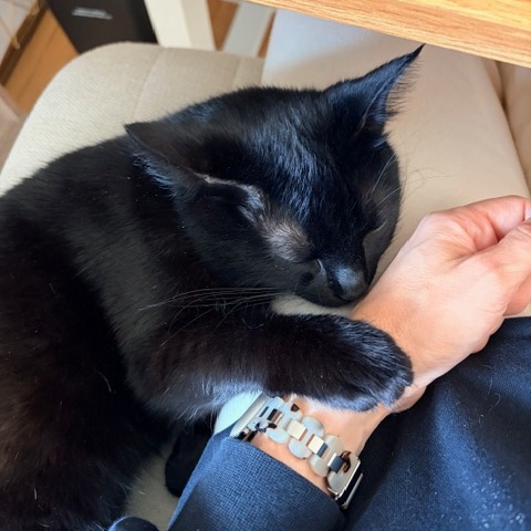 Leah is calm, cuddly, and affectionate. She spends much of her day curled up in her foster mom’s lap while she works, happily soaking up attention. Leah loves to be held and doted on, and she greets her people right away with the cutest little chirps whenever they enter the room.
