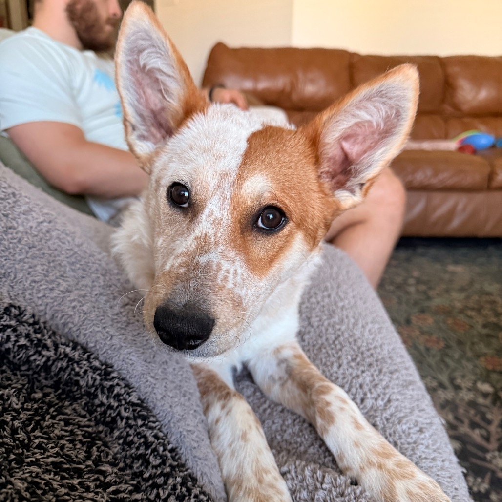 She’s dainty when interacting with the style of other dogs. She’s politely curious about cats and wonderful with children. Lena will snuggle with her people, because she’s a genuinely happy girl. She’s smart and willing to learn, and will want a family who will keep her active, happy, and becoming her best, beautiful self.