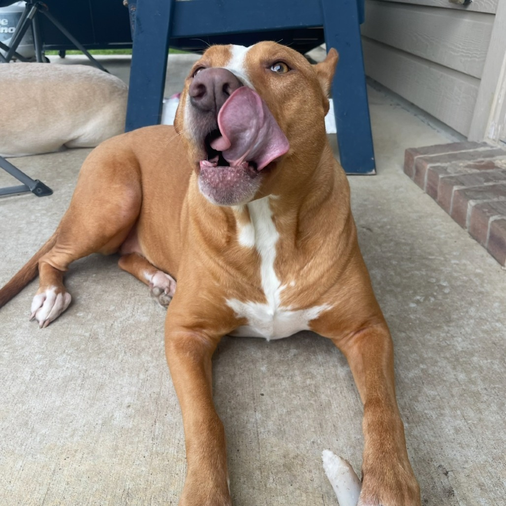 She’s a 5-year-old, 75-pound sweetheart with a big heart and an even bigger appetite. Maple is a fun-loving Lab-Bulldog mix who adores mealtime and playtime in equal measure. With her warm eyes and gentle nature, she’s the kind of dog that instantly makes you feel at home.