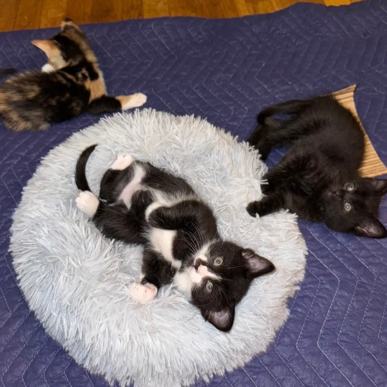 Moth is a fun, feisty little girl, full of energy, and playful as can be. She’s the kitten most ready to tussle with her siblings and will likely thrive in a home with other cats.