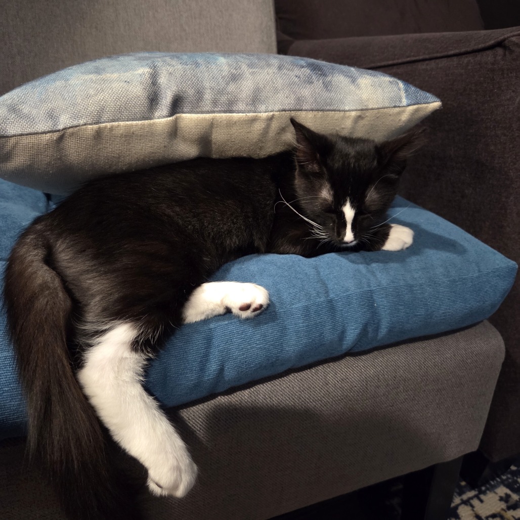 Nebula has already settled into a good litterbox routine and is adapting to her new environment. She’s playful with other kittens and likes a good mix of playtime and rest. Every now and then, she’ll find her own space and rejuvenate for her next chance to play.