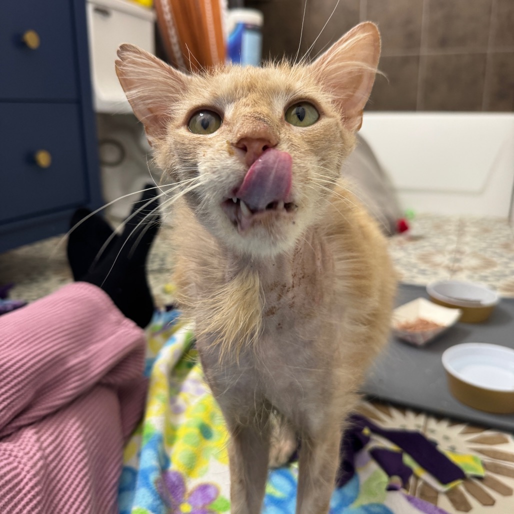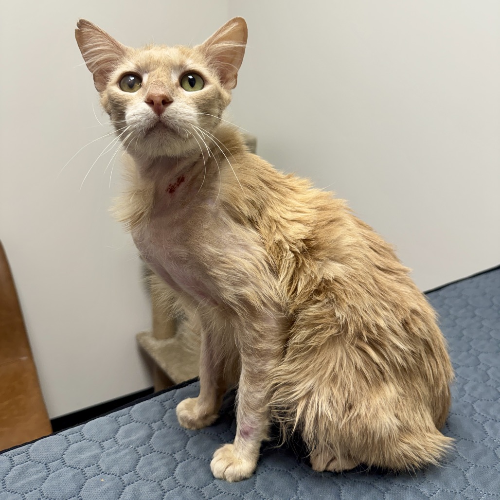 Nigel is a 2-year-old long haired cat who was found covered in scabs, mange and left to fend for himself. He has since finished treatment for his skin and is on the road to recovery!