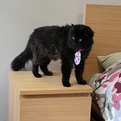 He has perfect house manners, never jumps on tables or counters, and comes to you litter box trained. Sesame previously lived with children and did great with them, and he gets along wonderfully with other cats.
