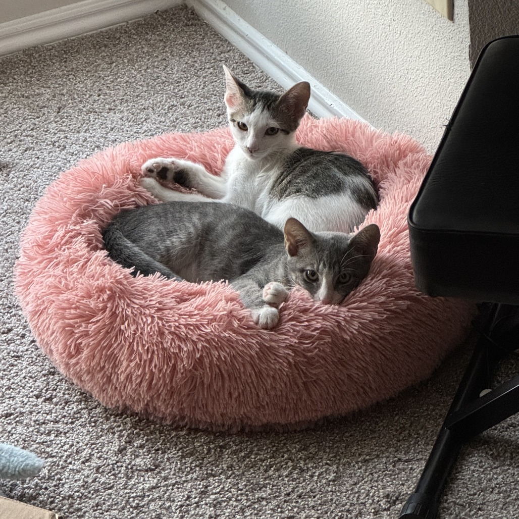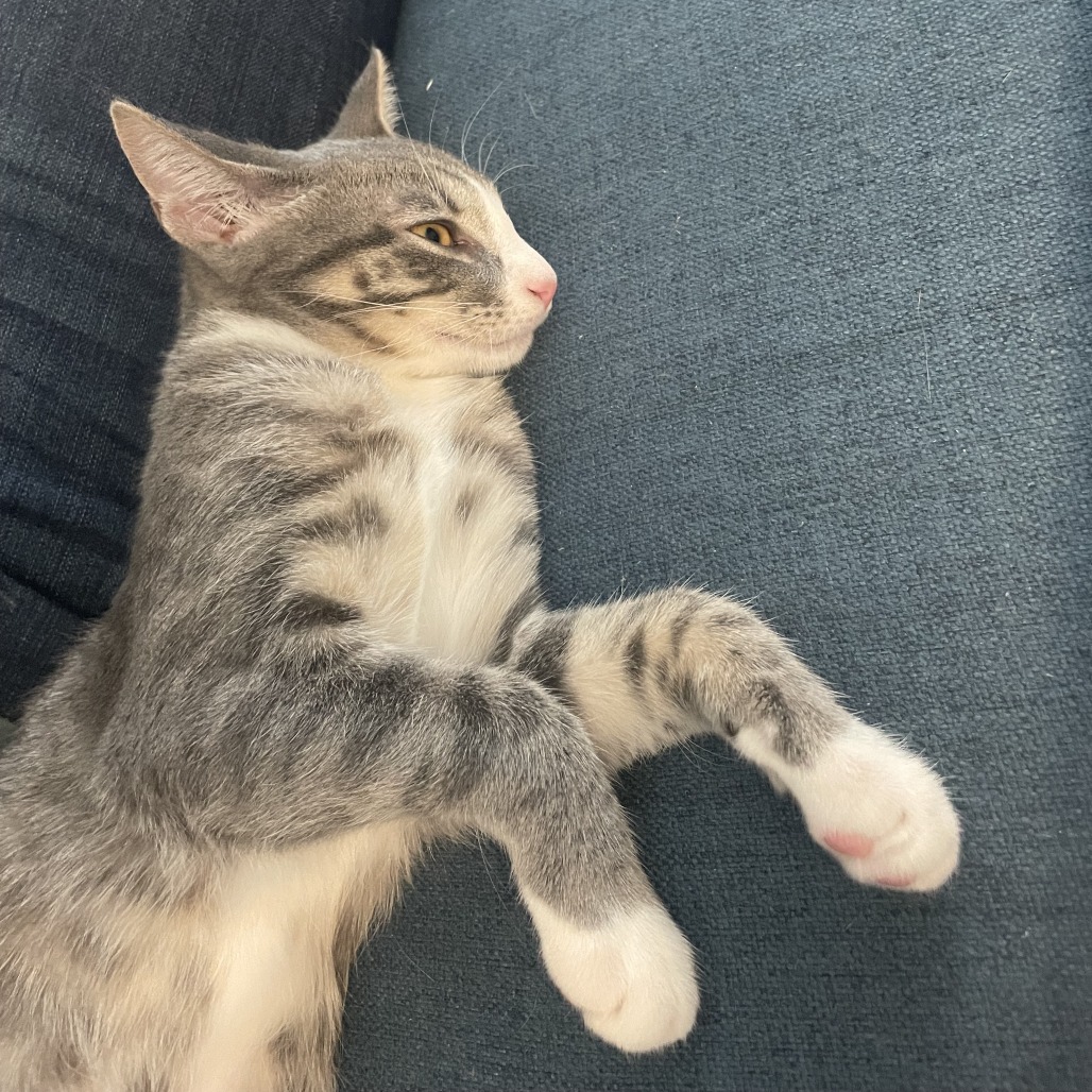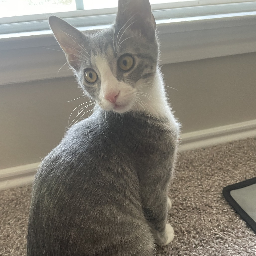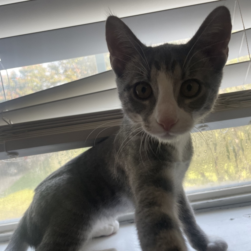 Already litter box trained, Noodle will want to have enough space to explore. She’s always up for a quiet cuddle when fun and games are done. She’ll purr with happiness when she sees her friends, and she’ll likely do well in a home with other cats as reliable playmates. Noodle can be a touch silly, but she can also be easy to love.