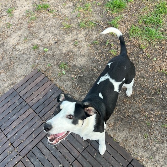 Meet the social butterfly Nova – she’s never met a human she didn’t love. She is a 9-month-old, 45 lb, collie mix, with a goofy but very affectionate personality. She was adopted 6 months ago from a shelter, and she was so scared she would only belly crawl for days. With time and attention, she’s transformed into a mostly confident, curious, loving girl. Nova is fully up to date on all her vaccines, is spayed, and microchipped.