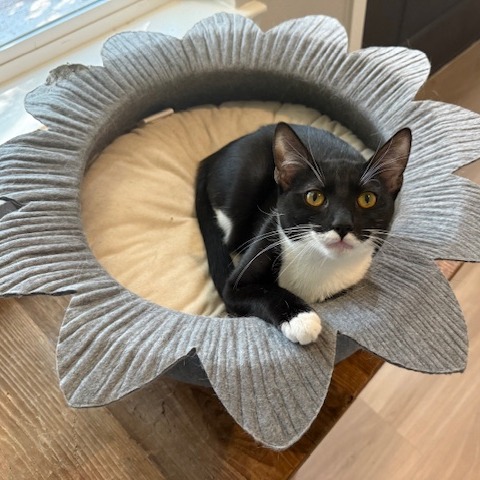 Meet Omega, the one and only female of her litter of five! This intelligent and observant girl is definitely the boss of her brothers. She’s a bit more cautious than they are, preferring to take in her surroundings before diving into playtime. But don’t let her thoughtful nature fool you. Omega loves a good cuddle session and enjoys her playtime just as much as any kitten. She’s ready to bring her unique blend of smarts and sweetness to her new home!