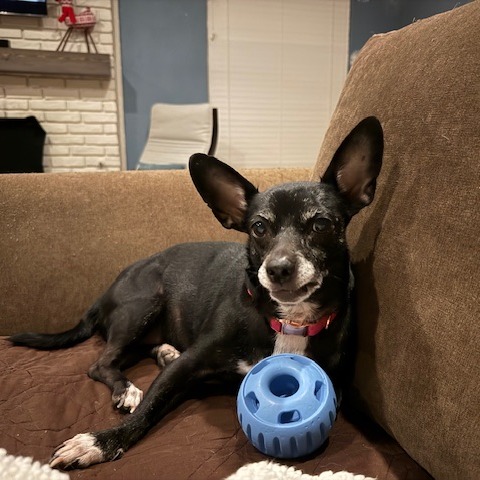Oreo is a spirited chihuahua/terrier mix with a big personality packed into a little body. At seven years young, she’s still very active and enjoys her walks just as much as she loves curling up for cozy snuggles. One of her favorite pastimes is burrowing under blankets—don’t be surprised if she insists on sleeping under the covers with you!