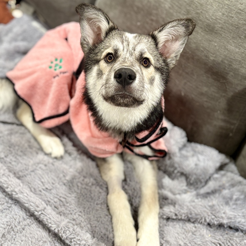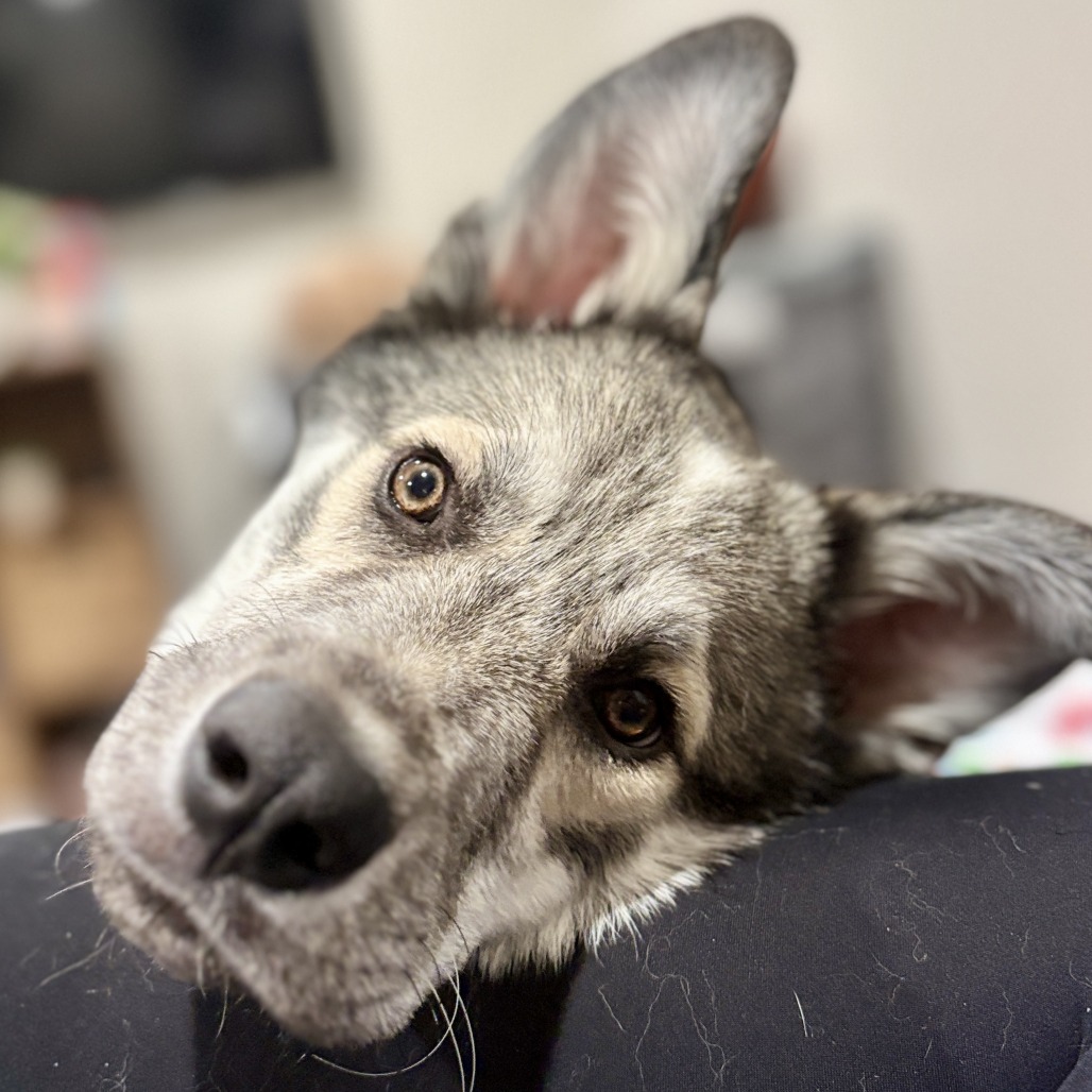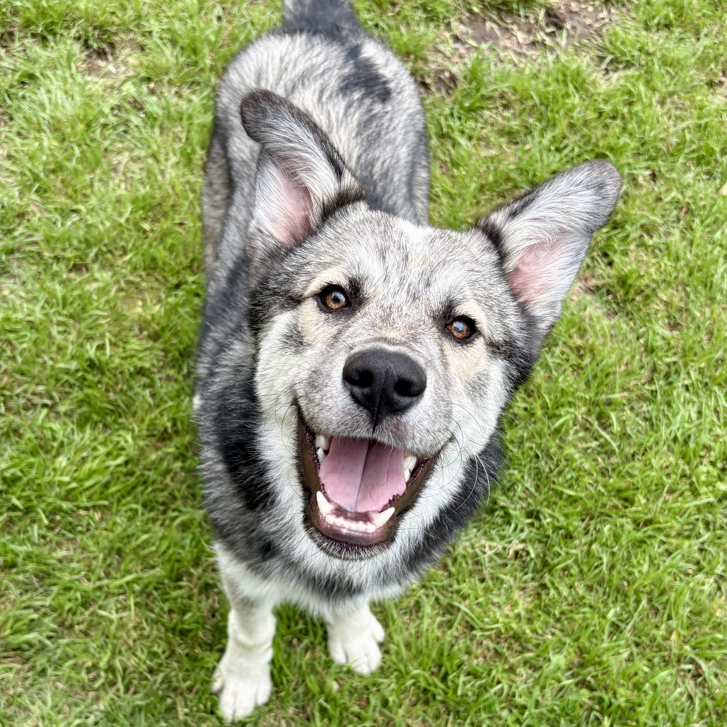 Porter’s an old soul. Still, he’s young in age and wise in his interactions with other furry friends. Porter lives with cats and respects their space. When it comes to dogs, Porter likes to be the one who starts playing because he’s a playful, yet gentle boy.