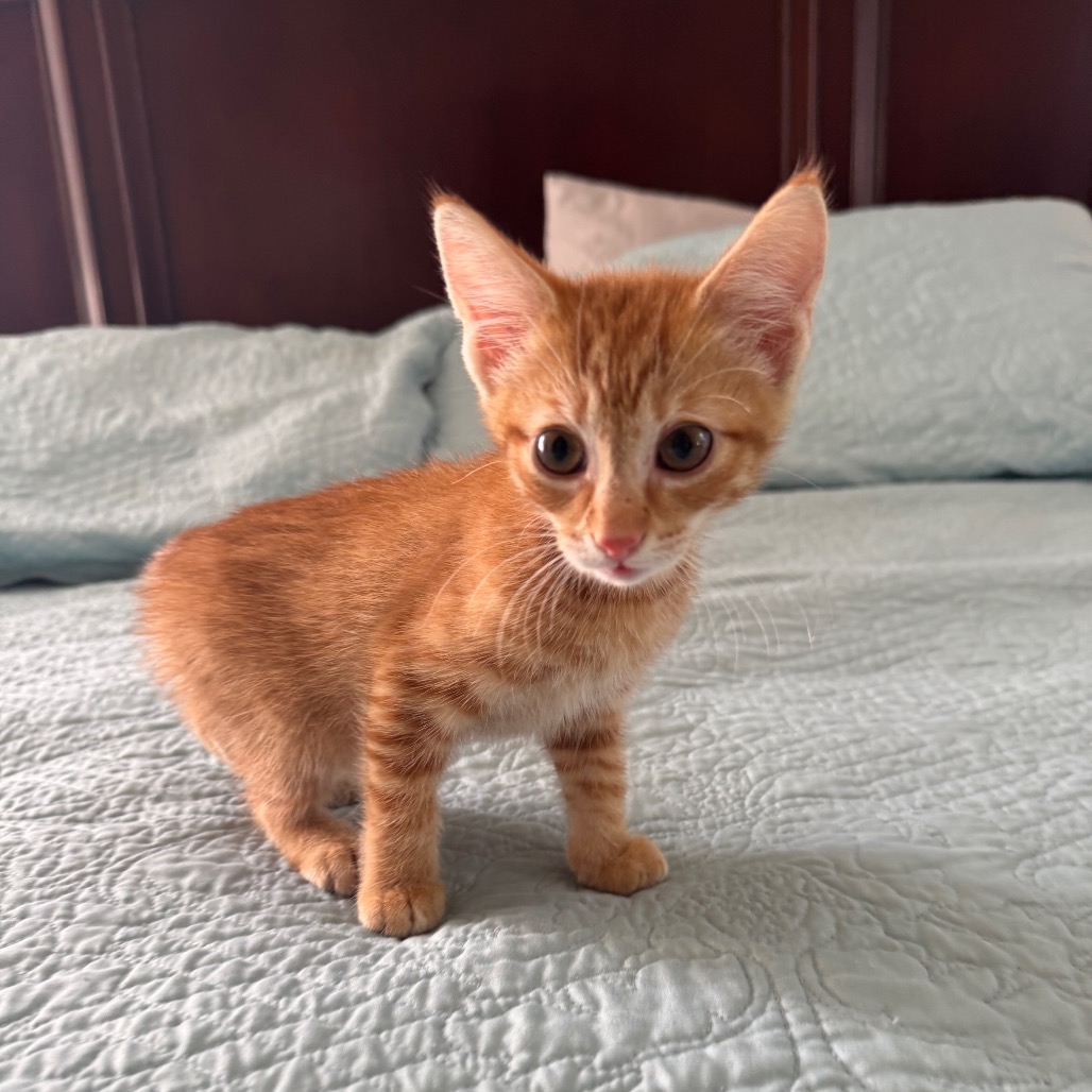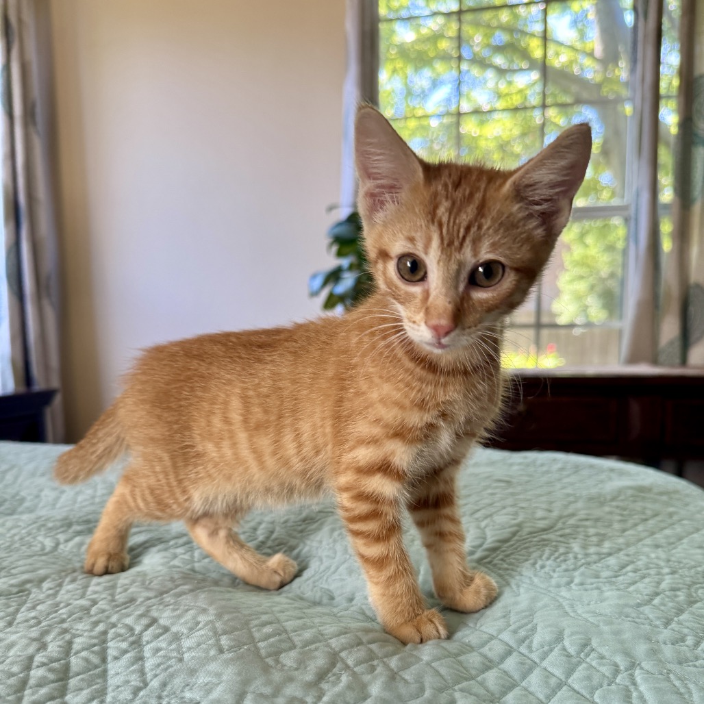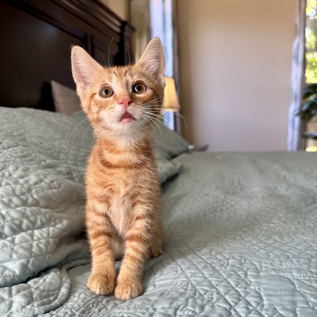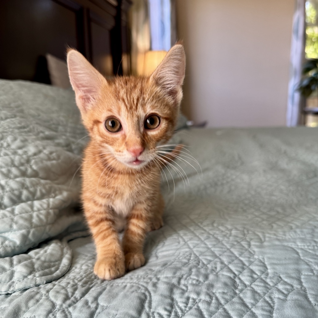 Meet Post Meow-Lone! This orange superstar had a tough start — a hurt lip and a broken femur — but he’s in the process of healing up and getting ready for his comeback tour! Post Meow-Lone can be a little shy with new fans, but once he feels safe, he’s playful, goofy, and full of personality.