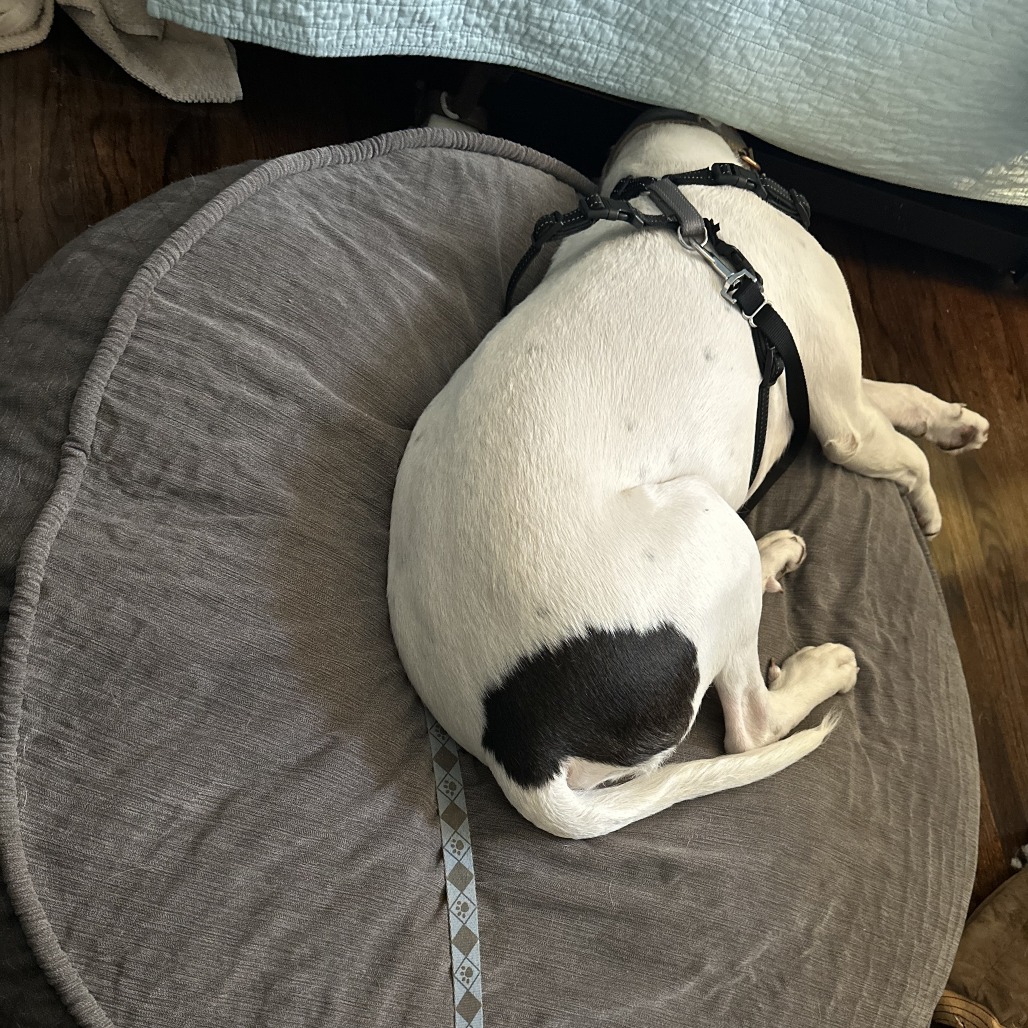After a long day, Randy’s favorite place to be is right next to you. He’s a champion cuddler who loves belly rubs and somehow still thinks he’s a lap dog.