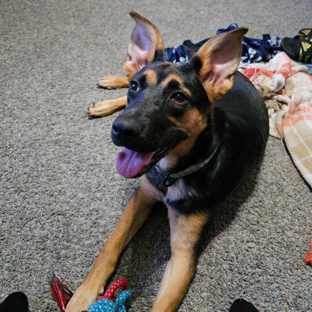 Riley is eight months old and 25 pounds. She is exceptionally playful and enjoys the company of children. She has a fondness for walks, frozen carrots, chasing bubbles, and swimming. While she loves playing in water, she is not particularly fond of baths which is hilarious.