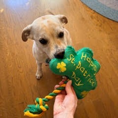 Riley enjoys tug-of-war with toys and is always excited to try a new puzzle or snuffle mat at snack time. She LOVES food and finds satisfaction in the mental stimulation these tools provide. She enjoys squeaky and crinkle toys, but mostly when someone will enjoy them with her, rather than on her own. Riley likes high energy playtime with her humans when possible – chase and/or hide and seek are often the correct answer to afternoon zoomies.