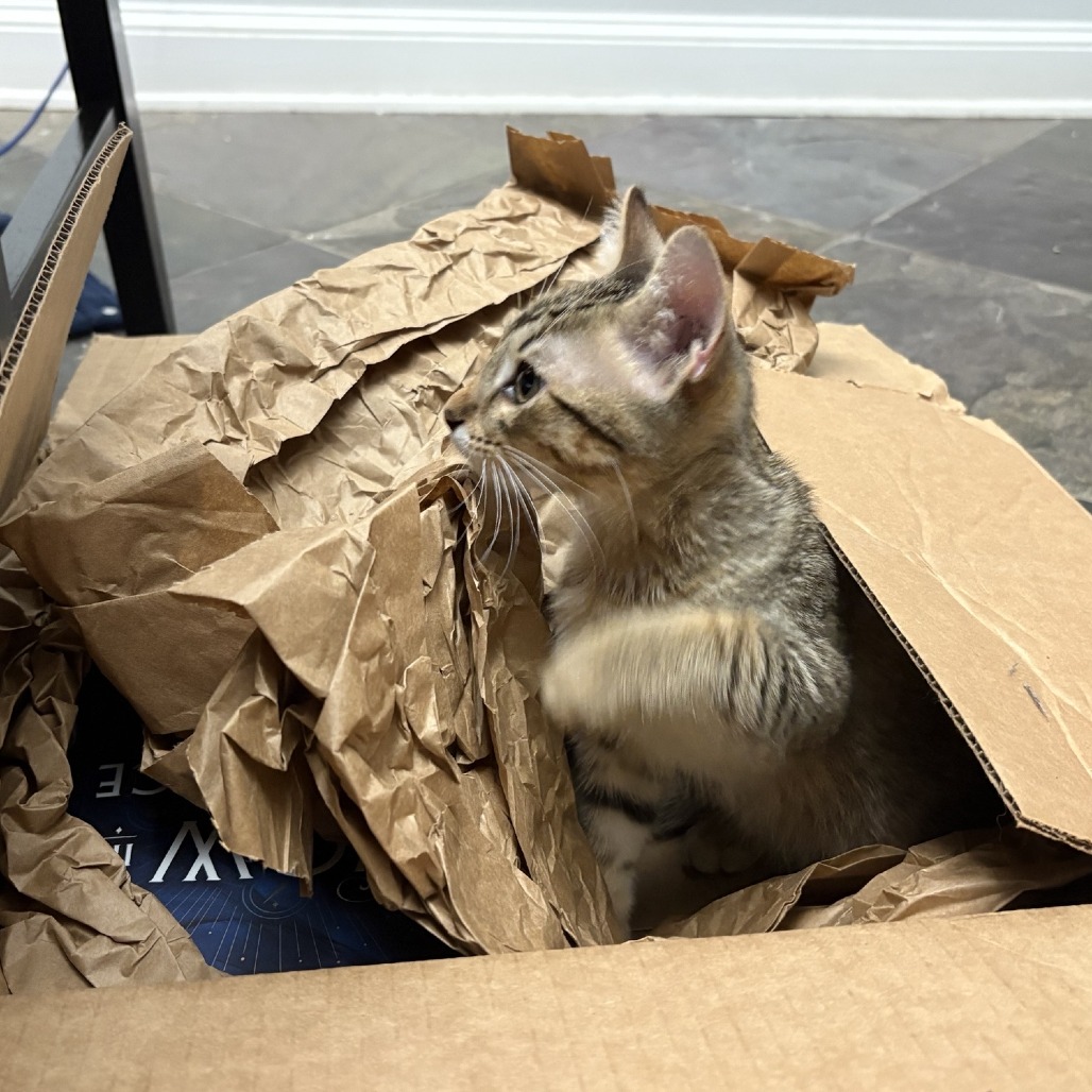 Rogue is a young and playful cat who loves to play with her siblings or any small toys that roll around but can also be picked up! She is litter box and scratching post trained.