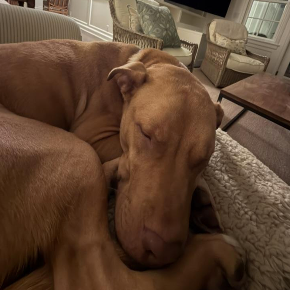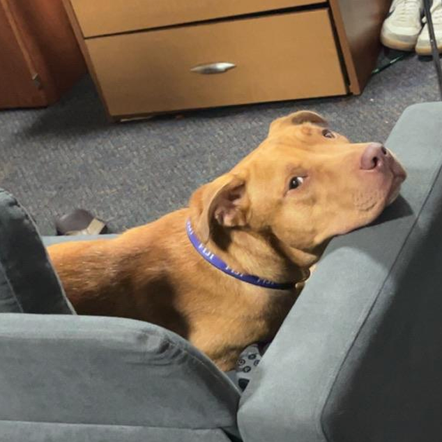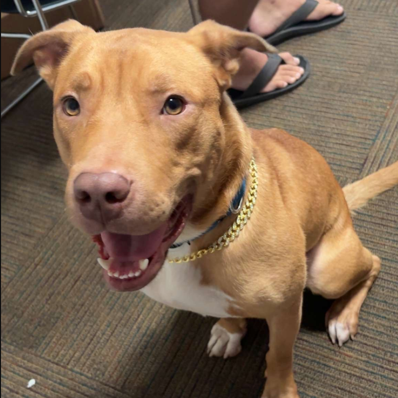 Meet Rudy, a playful and affectionate 3-year-old lab/pit mix with a big personality and an even bigger heart. He has a strong, athletic build and an expressive face that always seems to show his happy, goofy nature. Rudy was adopted last September and has been a loyal and loving companion ever since, quickly becoming a favorite wherever he goes.