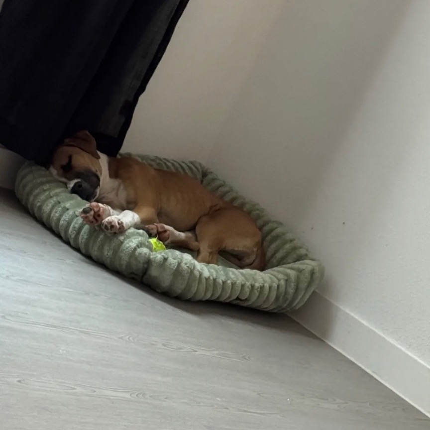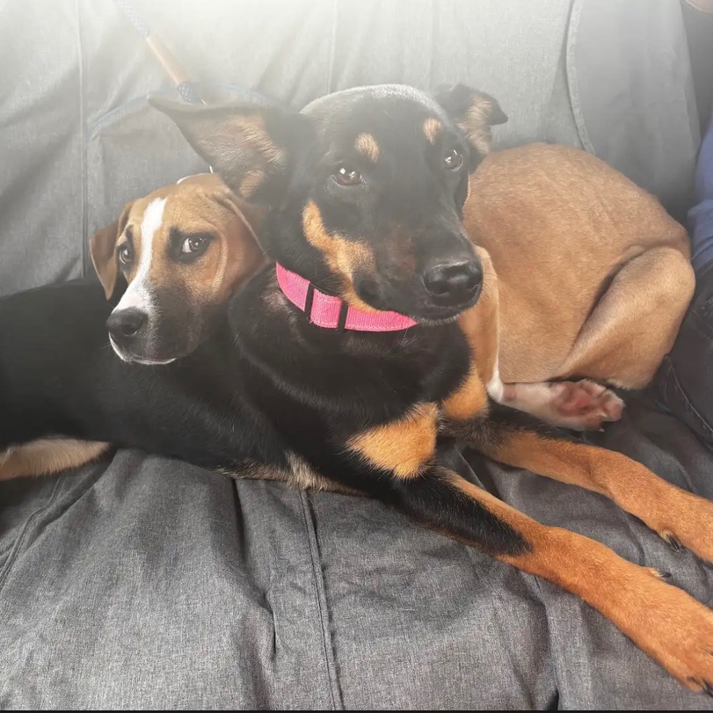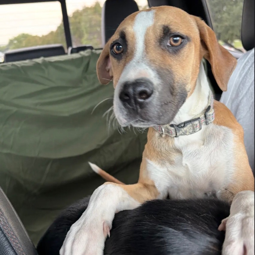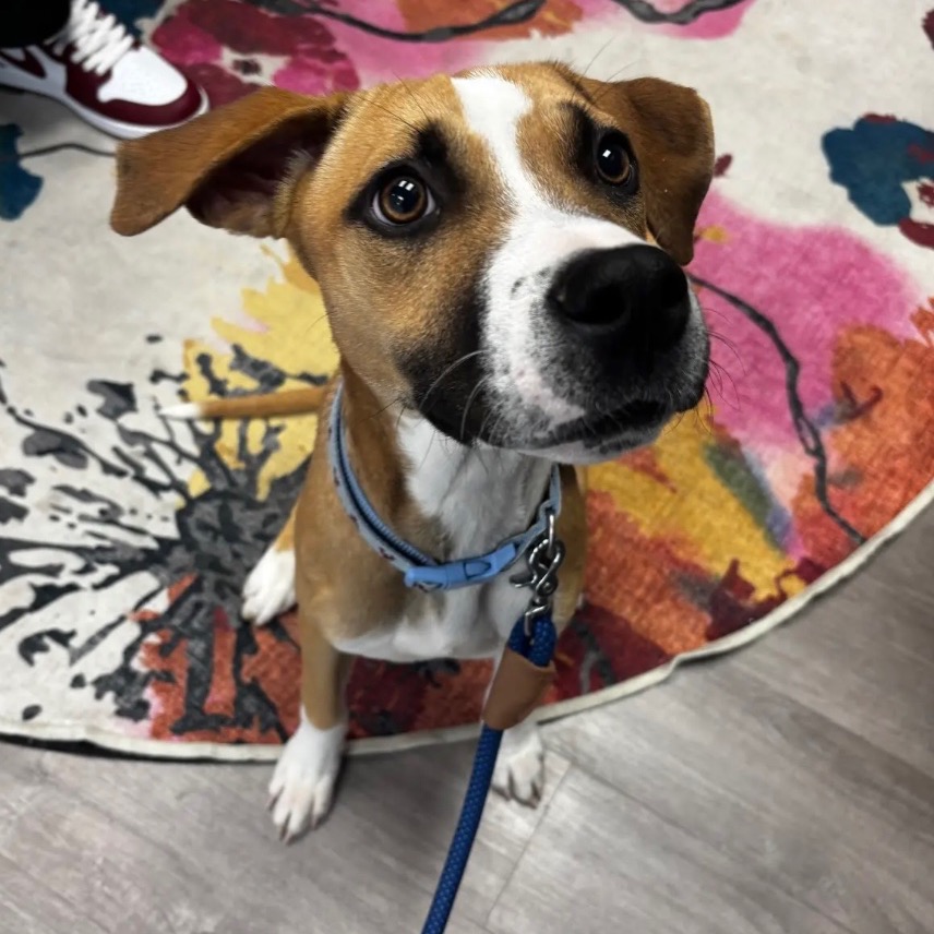 This young boxer mix loves playing fetch, teddy bears and cuddling up on the couch. He is the perfect mix of playfulness and snuggles. He’ll happily chase a ball in the yard, then curl up next to you for some quality cuddle time. He’s great with both dogs and cats. He’s already learning his basic commands like sit and lay down and is eager to please.