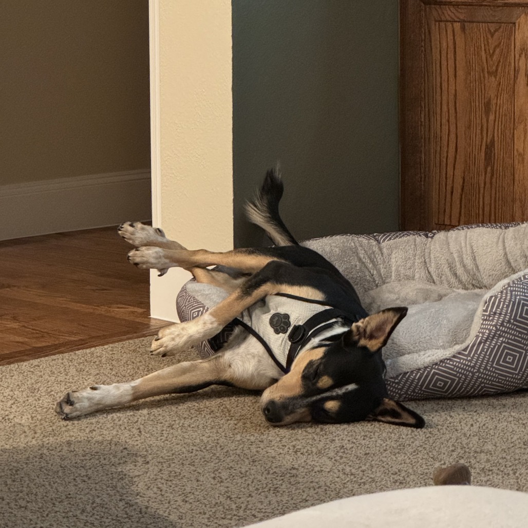Scooter has been nothing short of wonderful. He’s gentle, loving, and great with kids. He’s fully potty trained, walks beautifully on a leash, and has quickly adjusted to being indoors. He’s vaccinated, neutered and has the sweetest, most even temperament, he especially loves rolling over for belly rubs and being close to people.