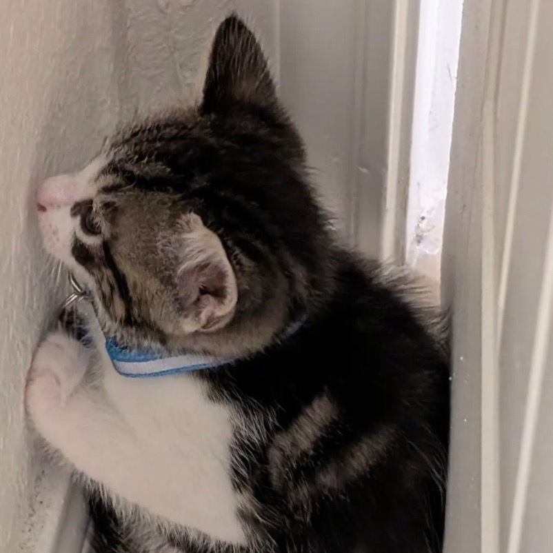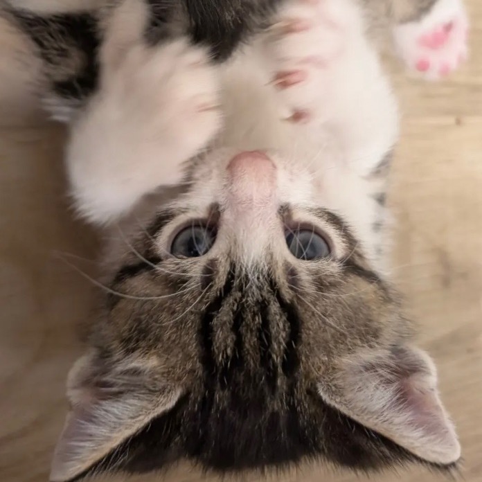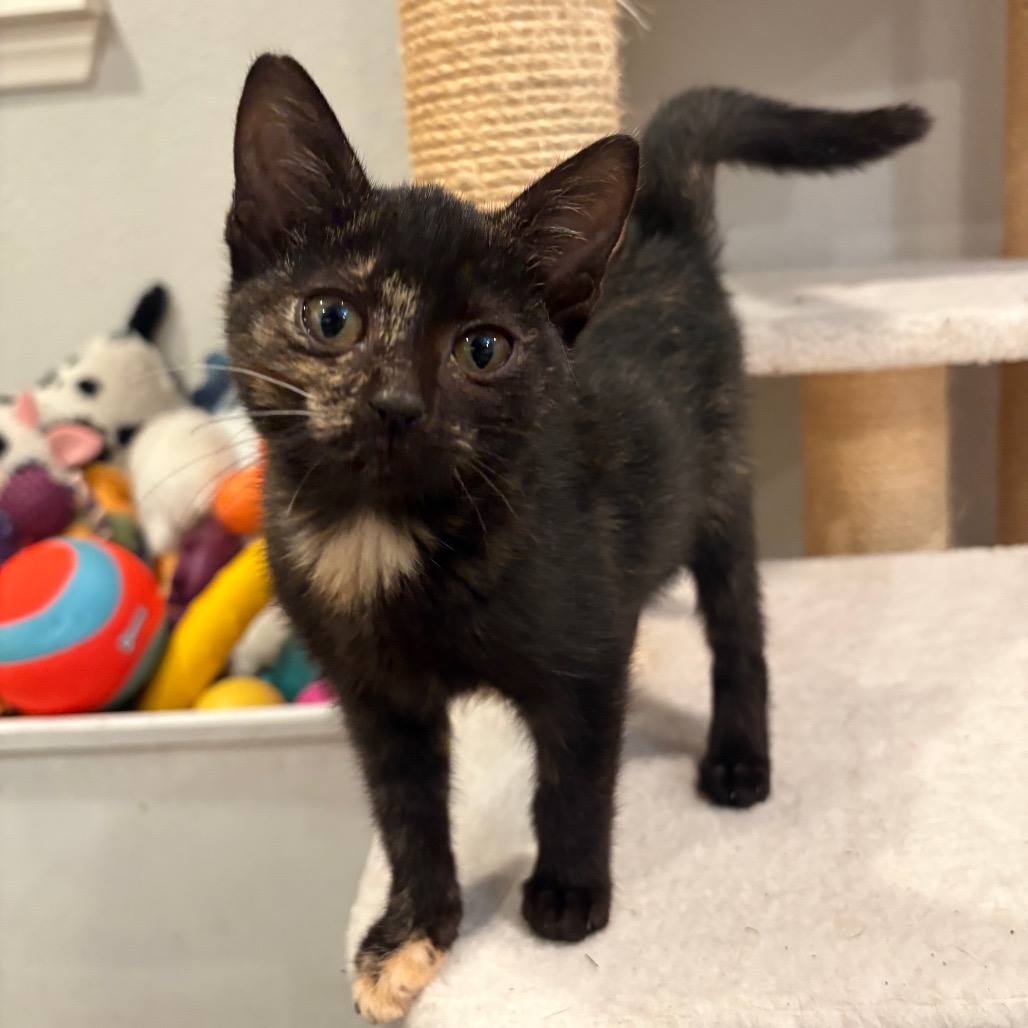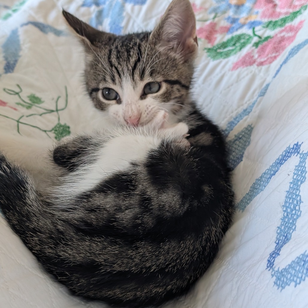 Spats also knows how to be a cuddly kitten. He uses a soft paw to get extra attention. He’s proven himself to be well behaved with a variety of family members and balances his playfulness with his affection.